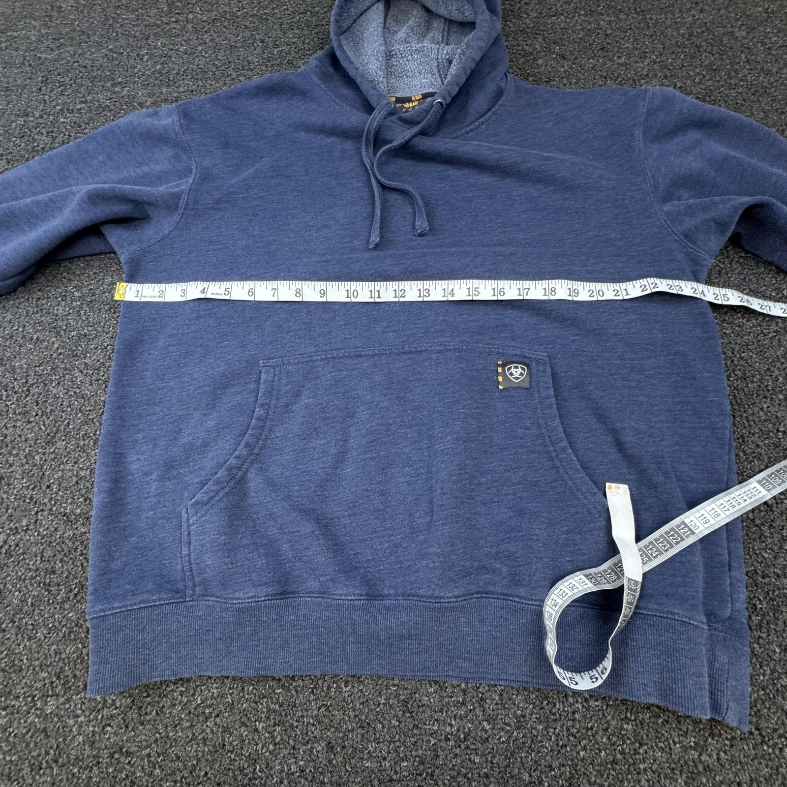как выглядит Ariat Rebar Hoodie Sweatshirt Mens Large Blue Sleeve Logo Fleece Workwear фото