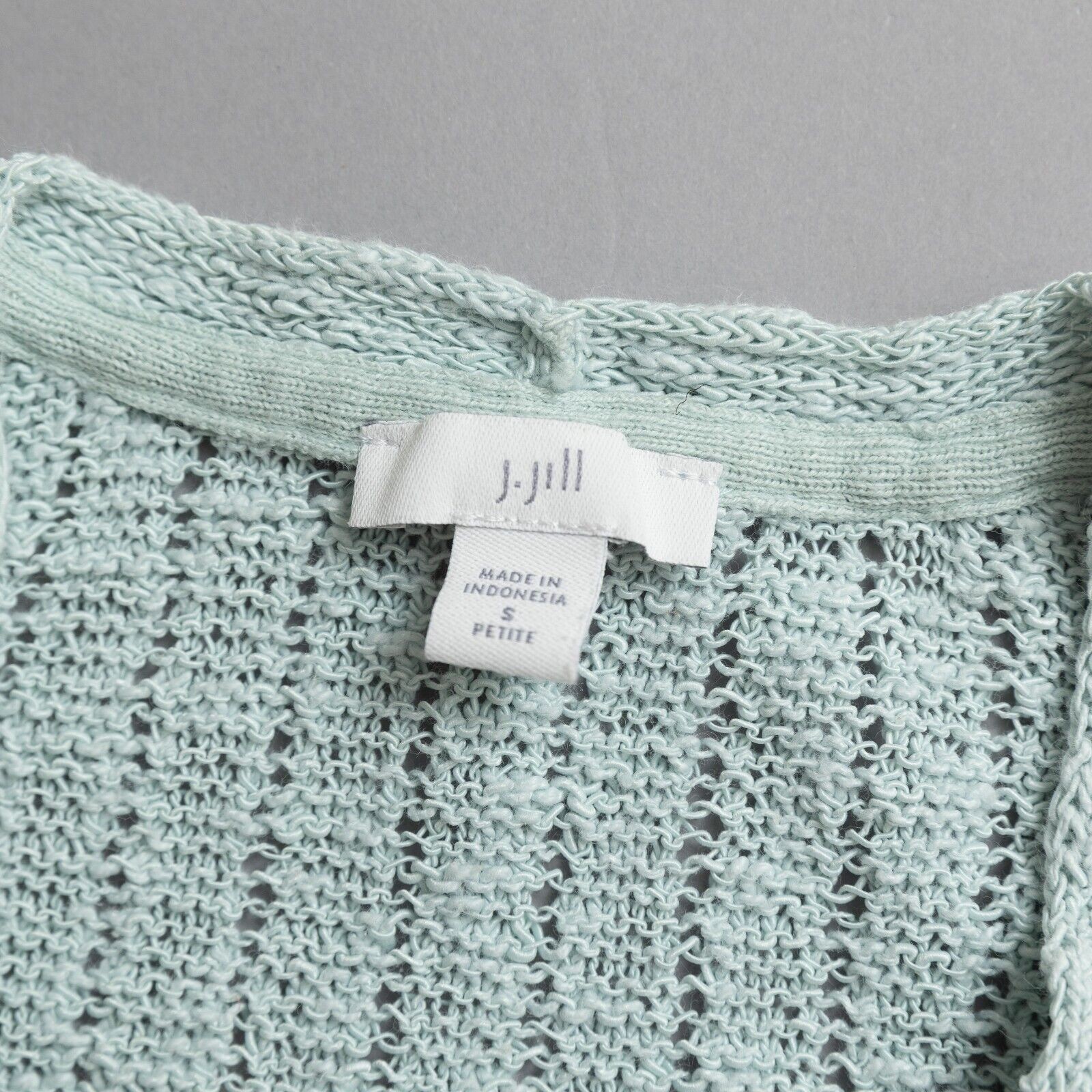 J Jill Sweater Womens Size Small Petite V-Neck 3/4 Sleeve Blue/Green 79 Retail