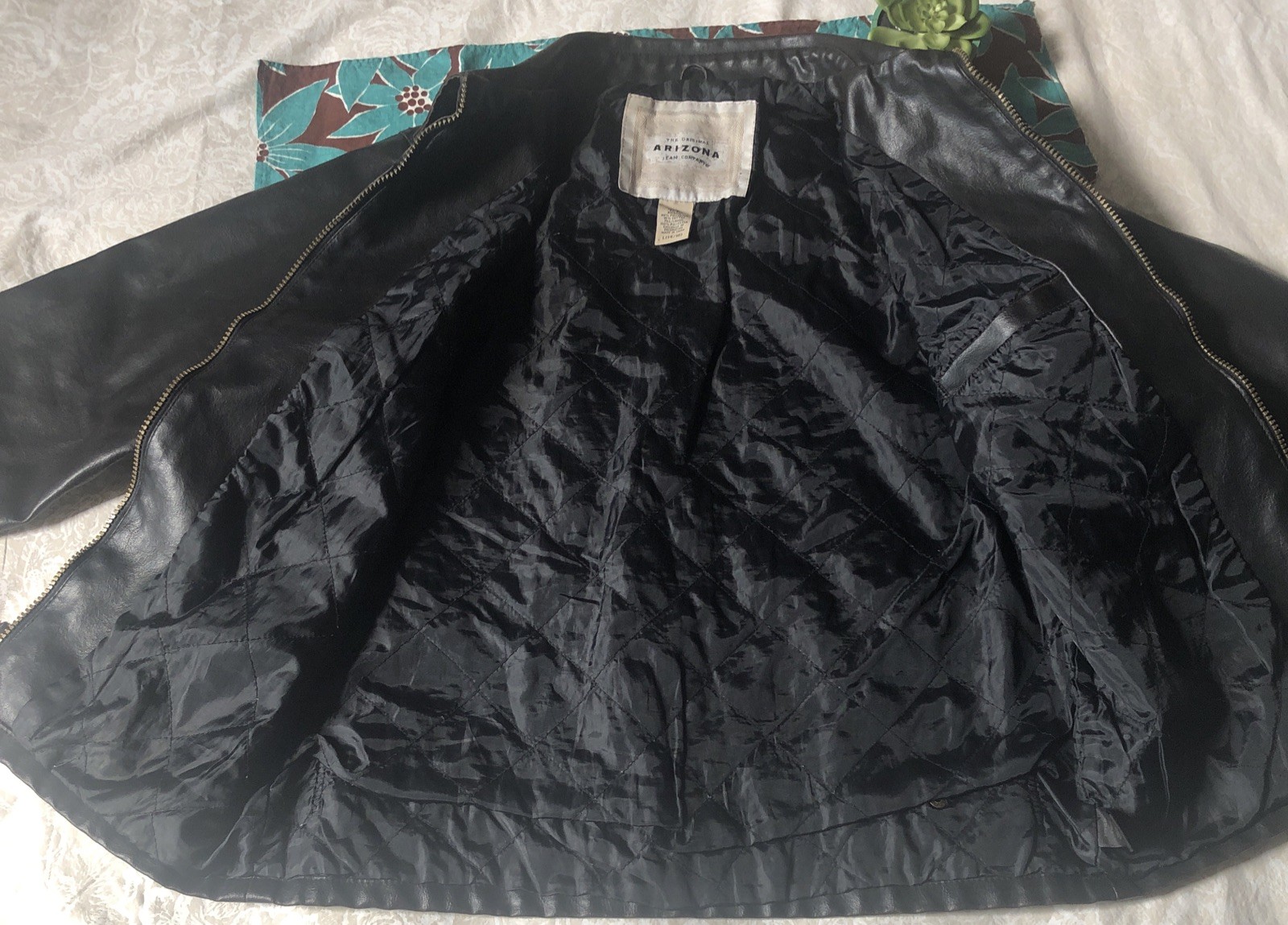 как выглядит Vtg Arizona Jeans Co Boys L Dark Brown Faux Leather Zip Up Jacket Lined Pockets фото