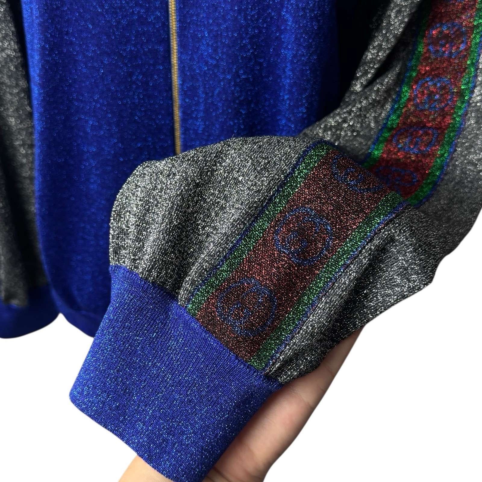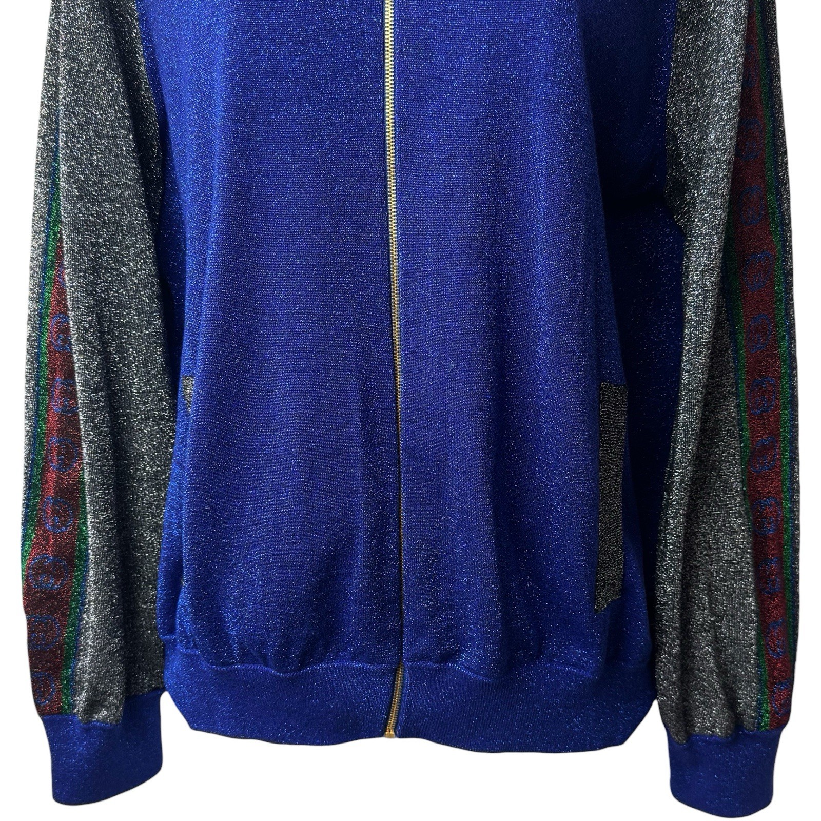Gucci Metallic Blue Wool Blend Interlocking G Detail Track Jacket Luxury M