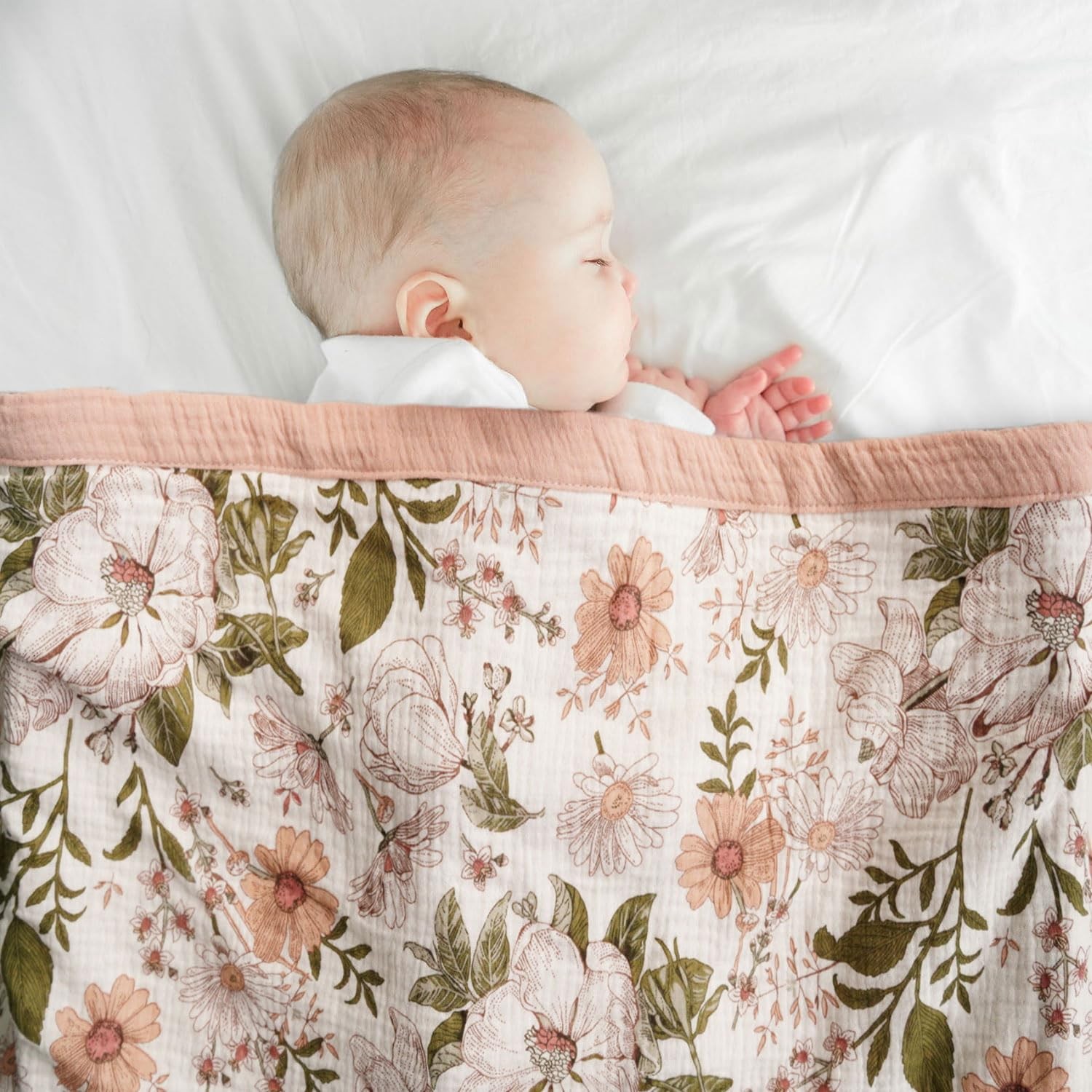 2 Layers Muslin Cotton Baby Blankets - Vintage Floral Toddler Quilt Crib Blan...