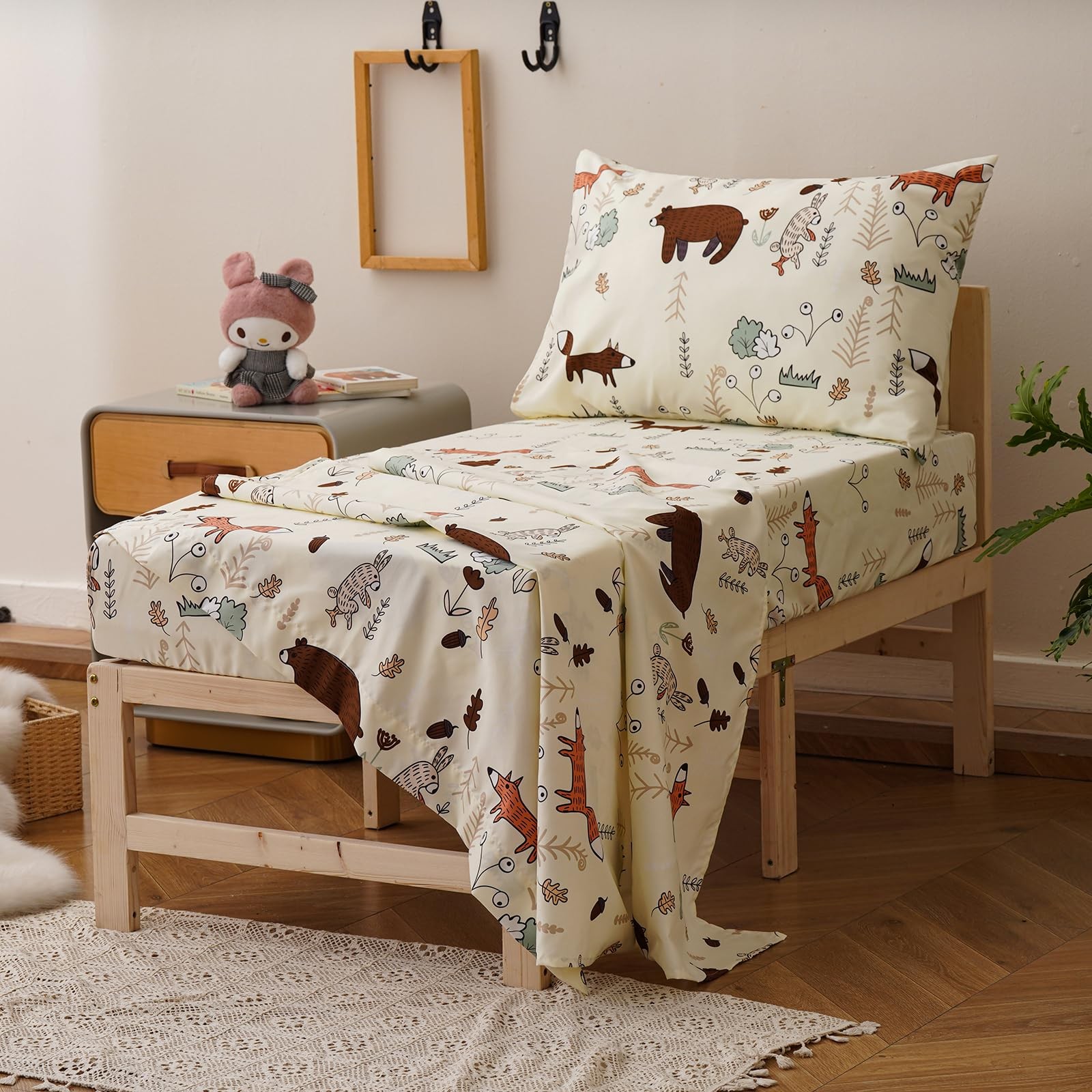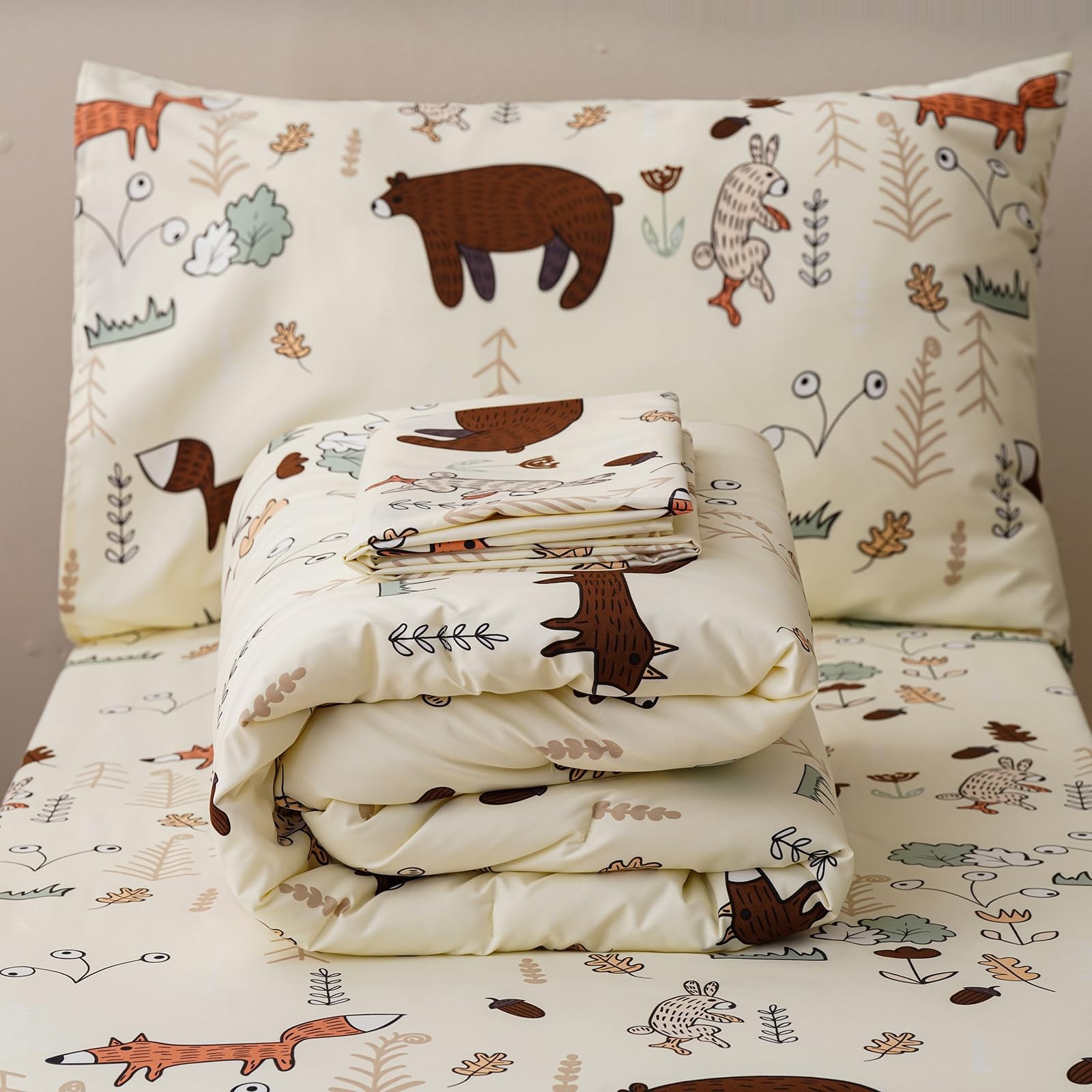 Yellow Bear Toddler Bedding Sets for Girls Boys Cute Cartoon 4 Pieces Soft Cr...
