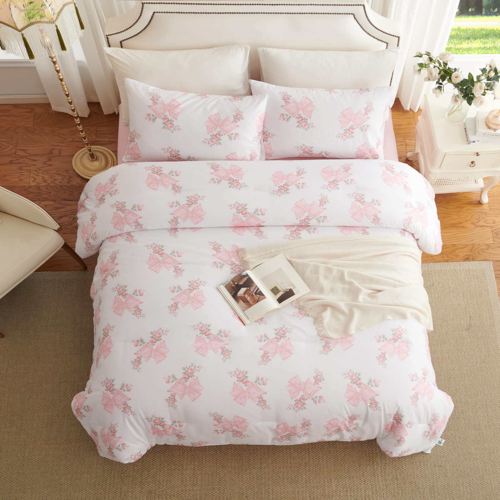 как выглядит Pink Bow Duvet Cover Full Size Floral Bowknot Bedding Set 3 Pieces Kids Boys ... фото