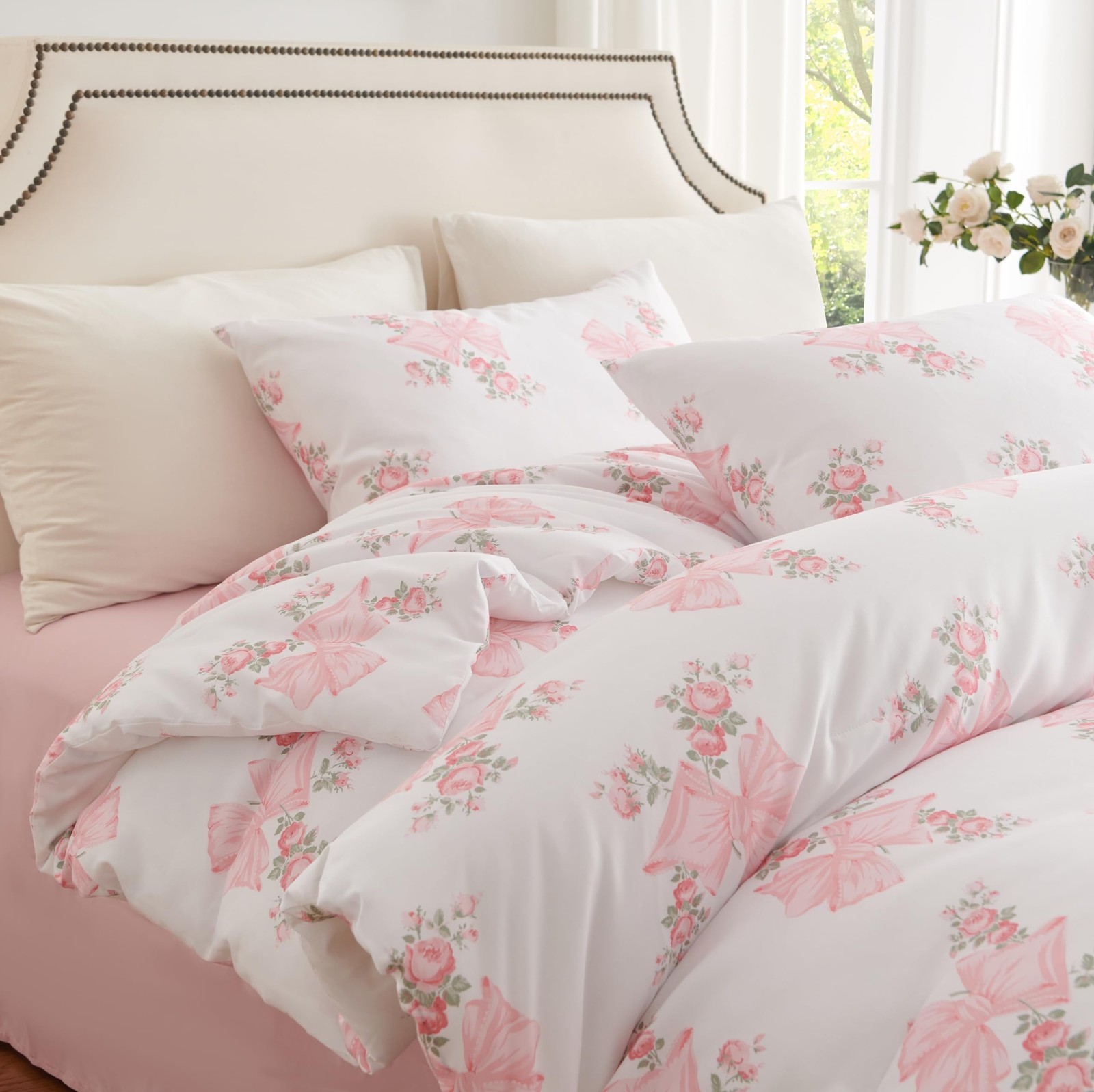 Pink Bow Duvet Cover Full Size Floral Bowknot Bedding Set 3 Pieces Kids Boys ...