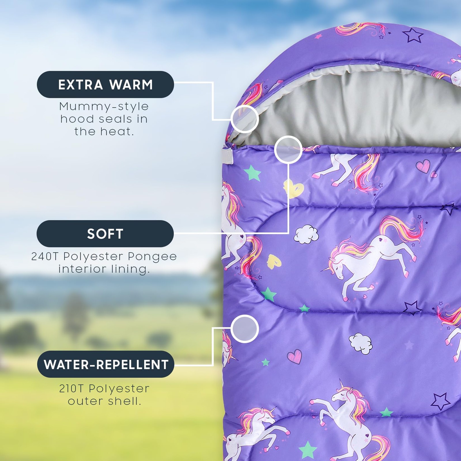 - Kids Sleeping Bag for Girls Toddlers, Camping in Warm Cold Weather, Backpac...
