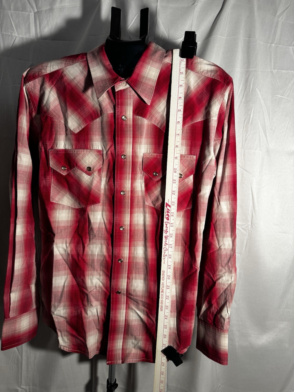 как выглядит Vintage 70s Wrangler American Cowboys Pearl Snap Western Plaid Shirt Size M dium фото