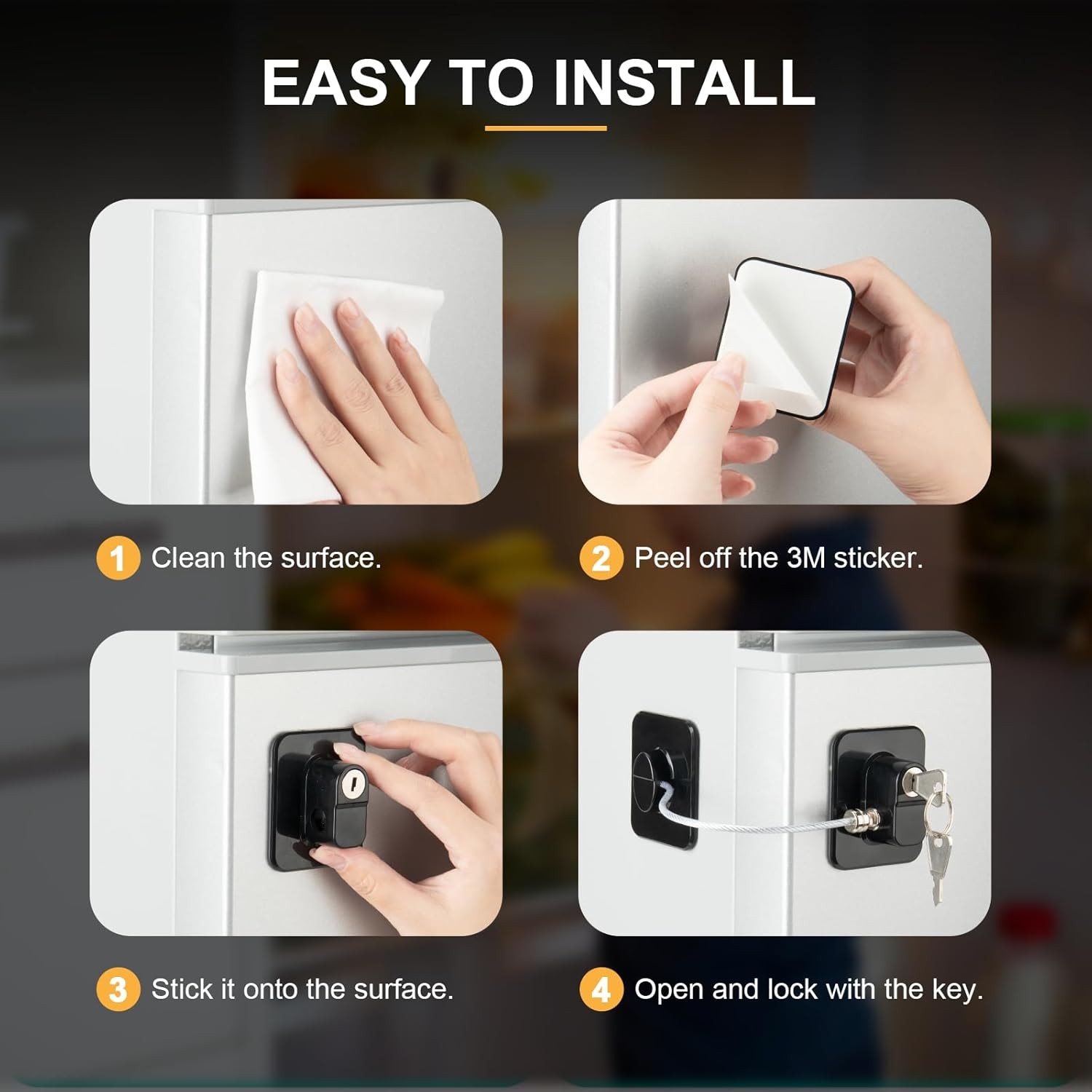 2 Pack Fridge Lock Freezer Lock with 4 Key for Child Safety Refrigerator Locks