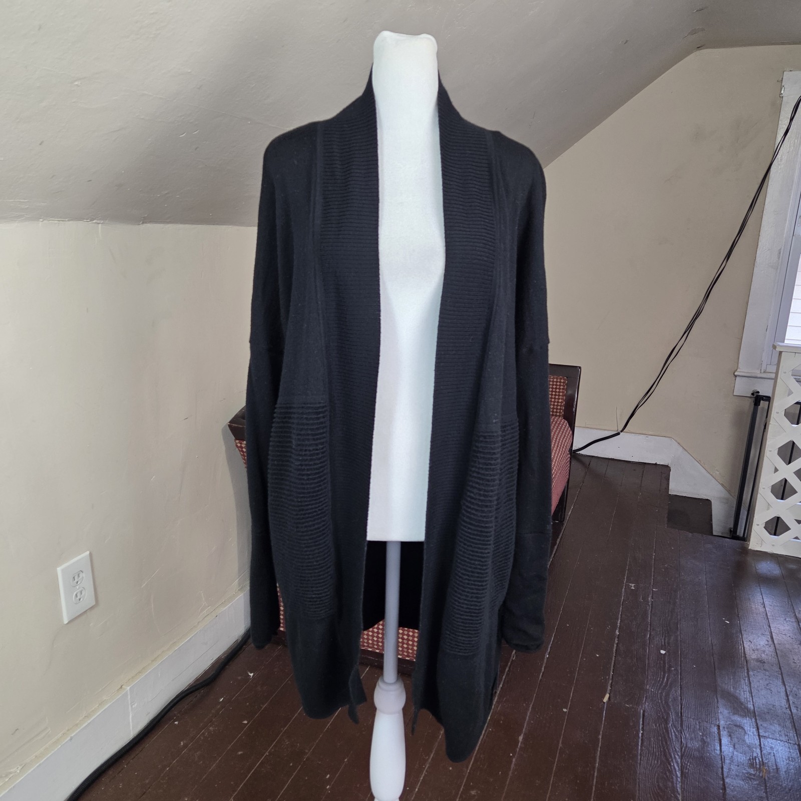 как выглядит Lululemon Wrap It Up Cardigan Sweater Black 8 Merino Wool Open Front Longline фото