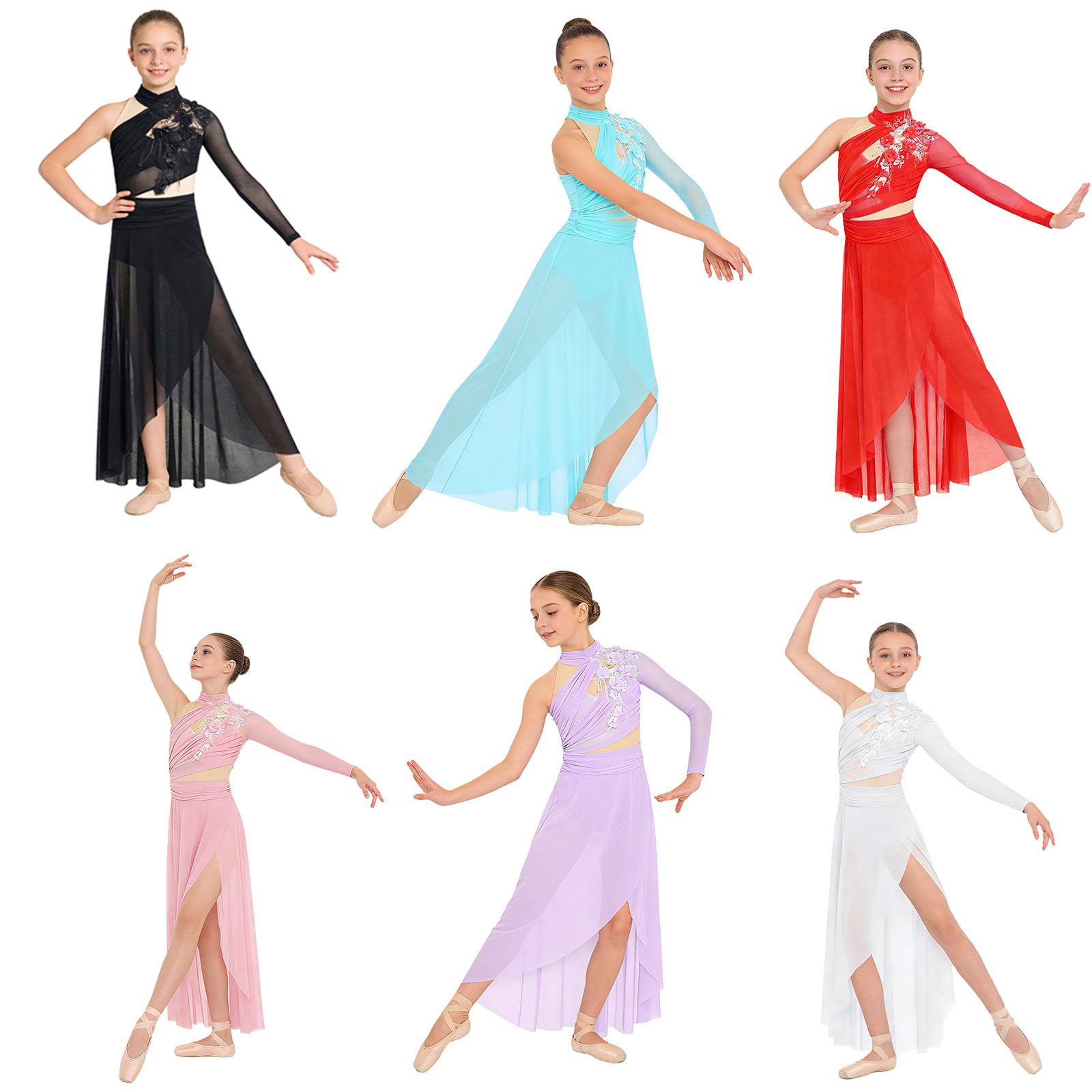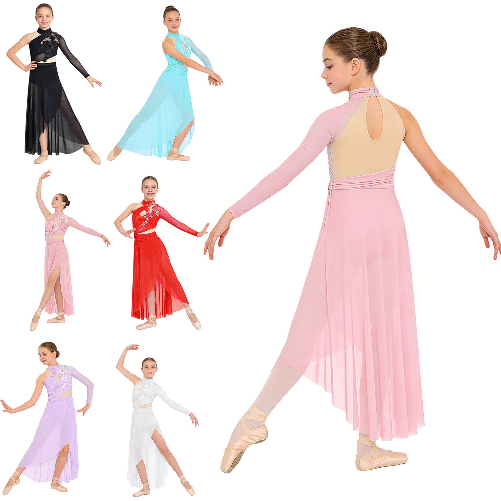 как выглядит Kids Girls Leotard Jazz Dancewear Mesh Dresses Performance Practice Training фото