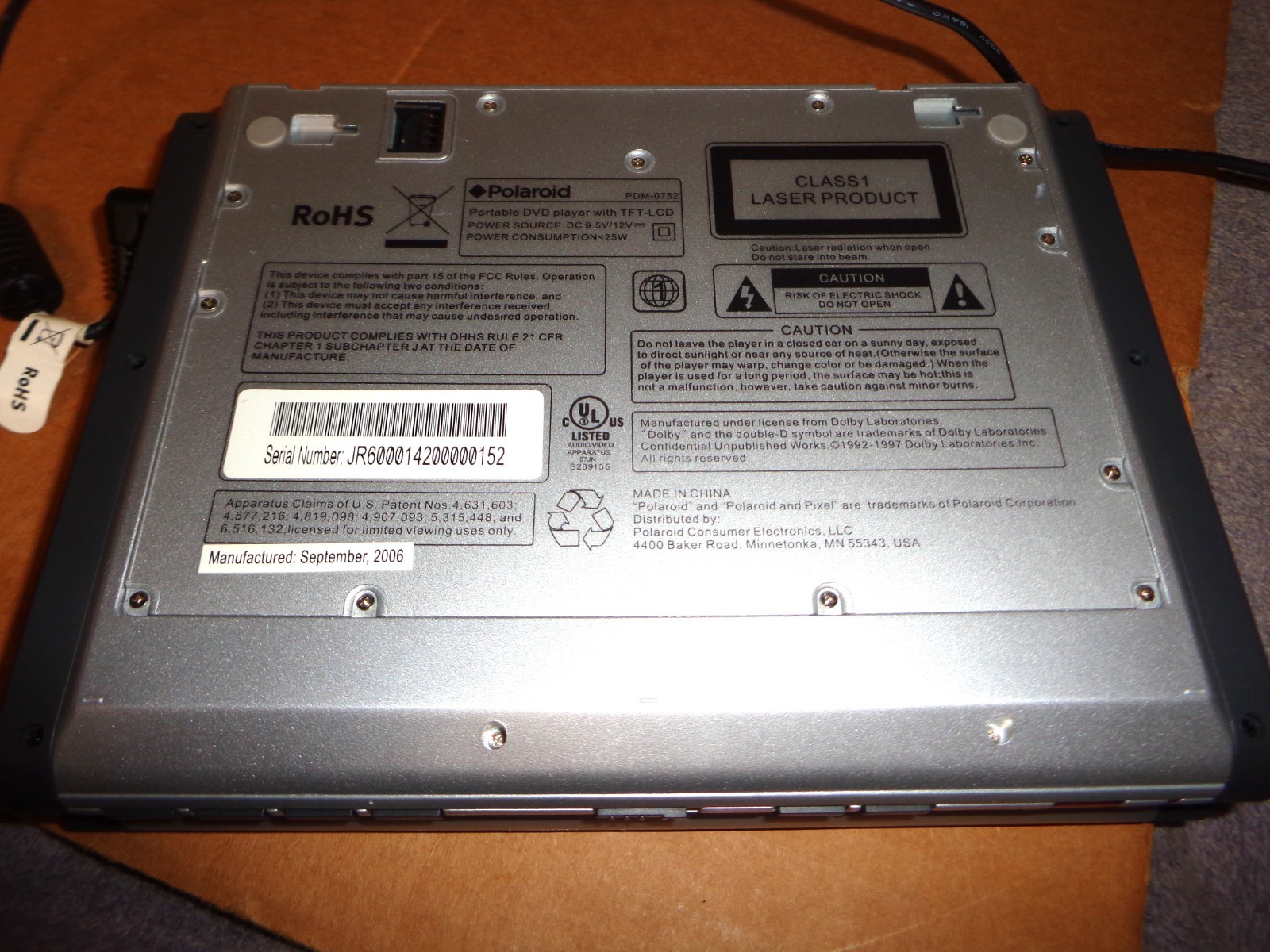 Polaroid Portable DVD Player PDM-0752, Car Charger Case AC ADAPTER Works READ