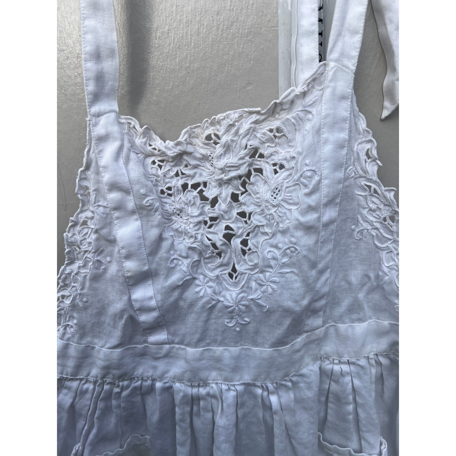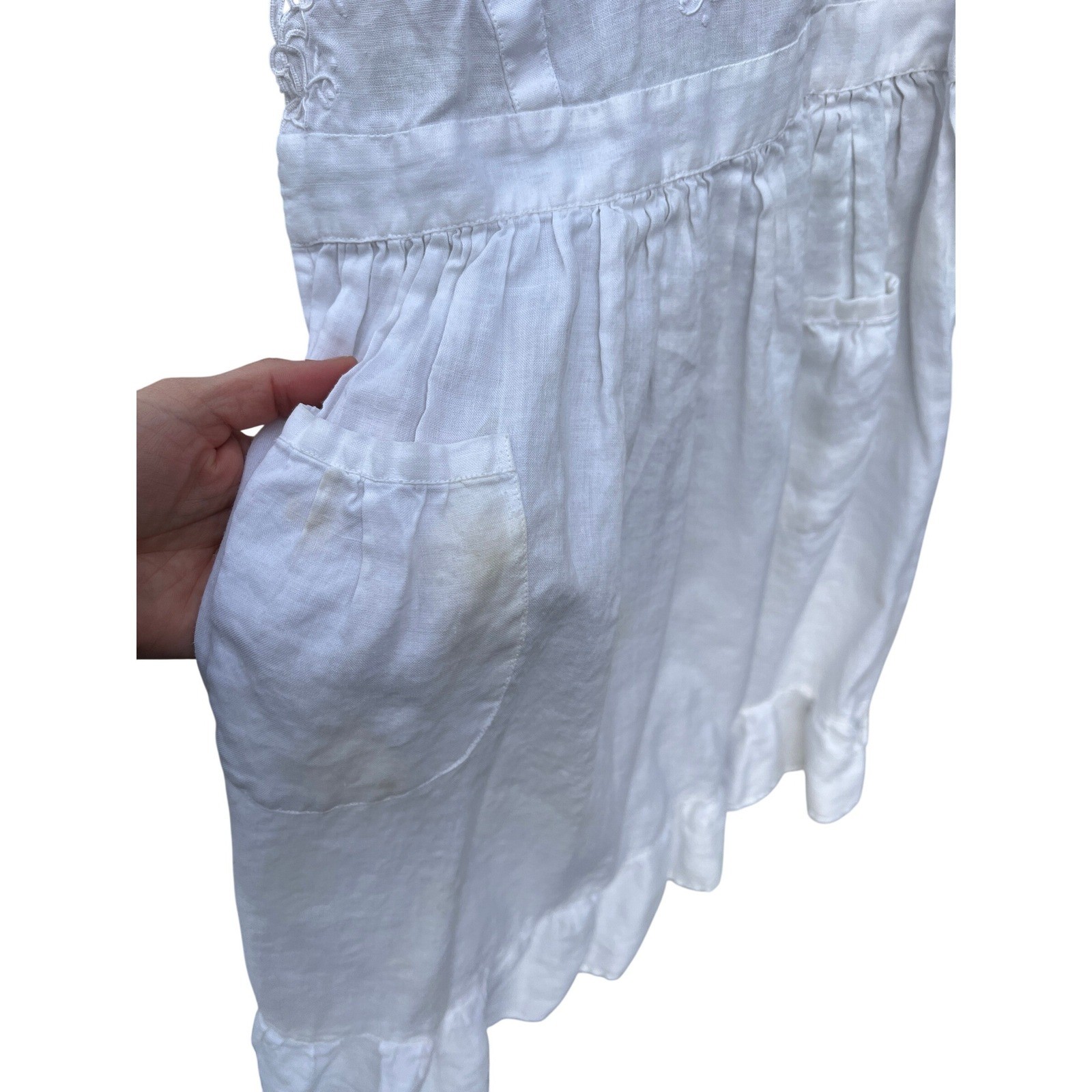 Kids Vintage White Apron Embroidered Cotton Ruffle Pinafore Dress Up Little Girl
