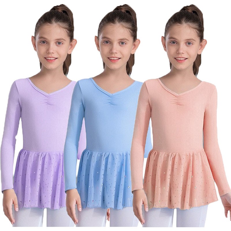 как выглядит Kids Girls Leotard Tulle Dancewear Warm Up Dresses Solid Color Dance Dress Back фото