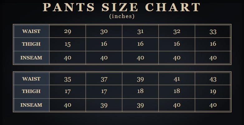 Inseam: 39~40 in