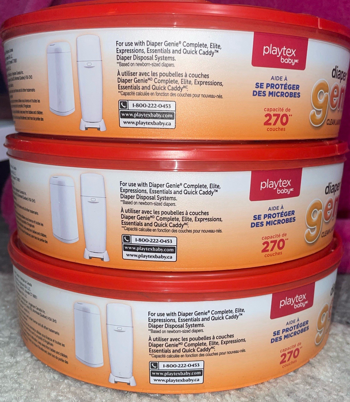 Set Of 3 Baby Diaper Genie Refill Packs-Clean Laundry Scent W/Max Odor Lock
