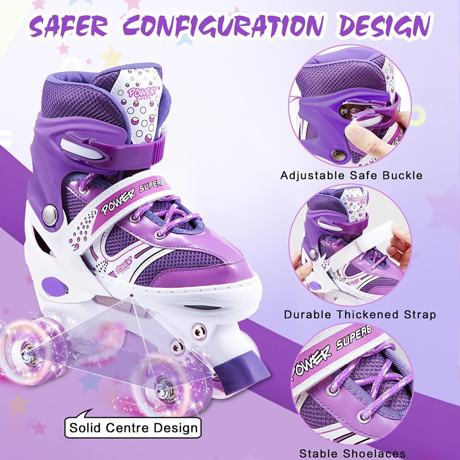 Kids Roller Skates, 4 Sizes Adjustable Roller Skates for Girls Boys Beginners...
