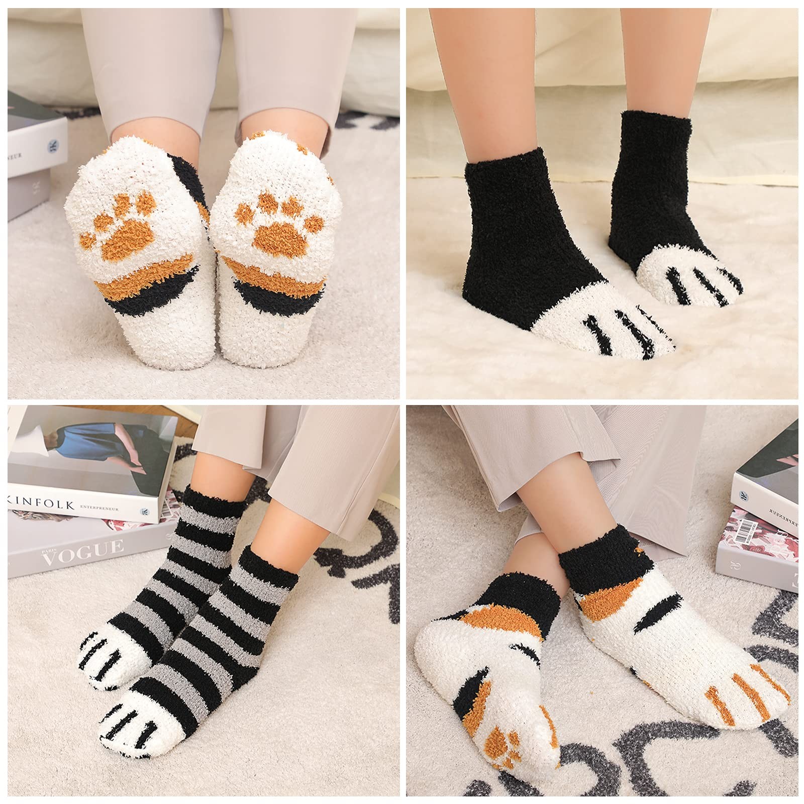 Fuzzy Socks for Women - 5 Pair Cute Funny Cat Fluffy Slipper Fuzzy Socks, Wom...