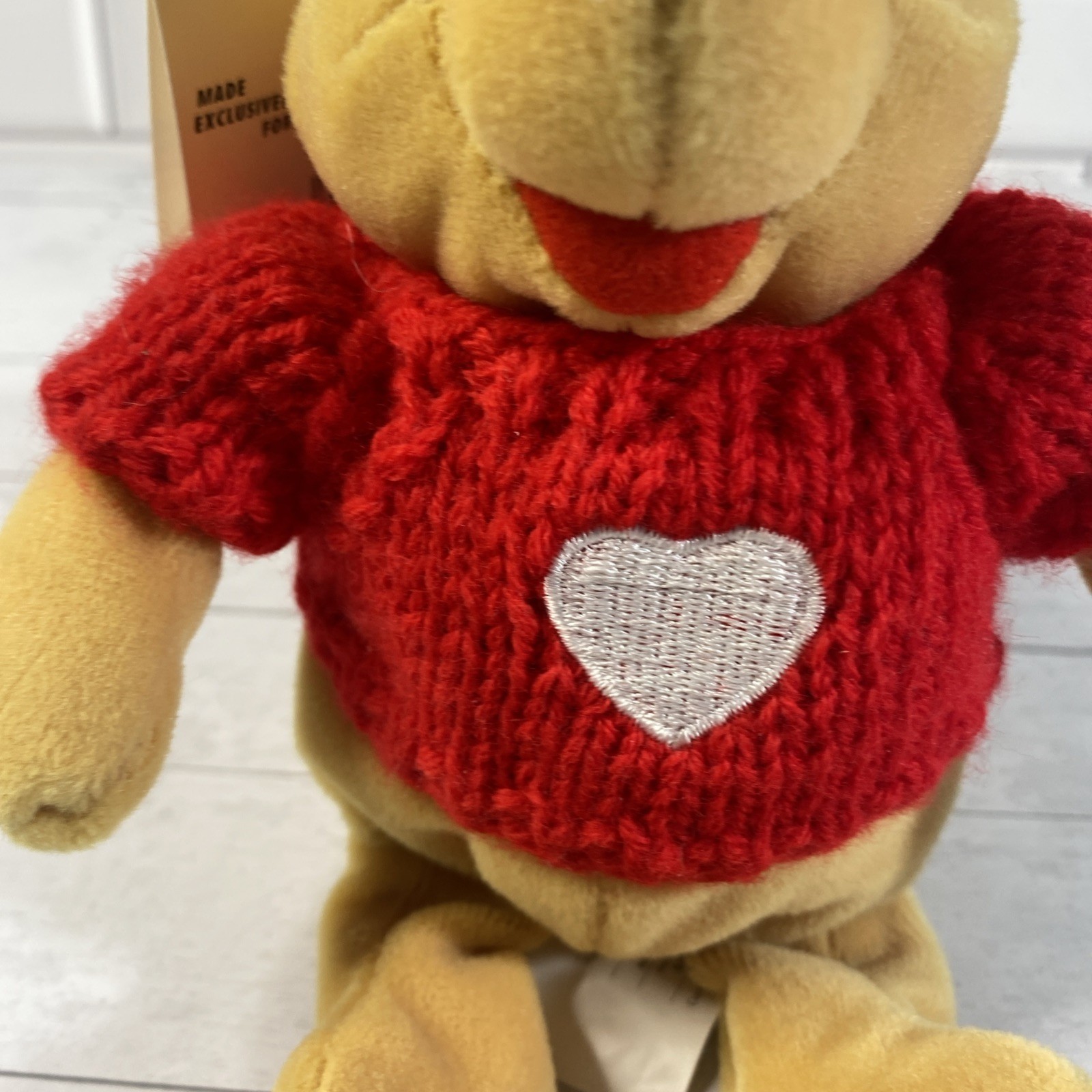 Disney Store Bean Bag 8 Inch Plush Winnie The Pooh Red Valentine Heart Sweater