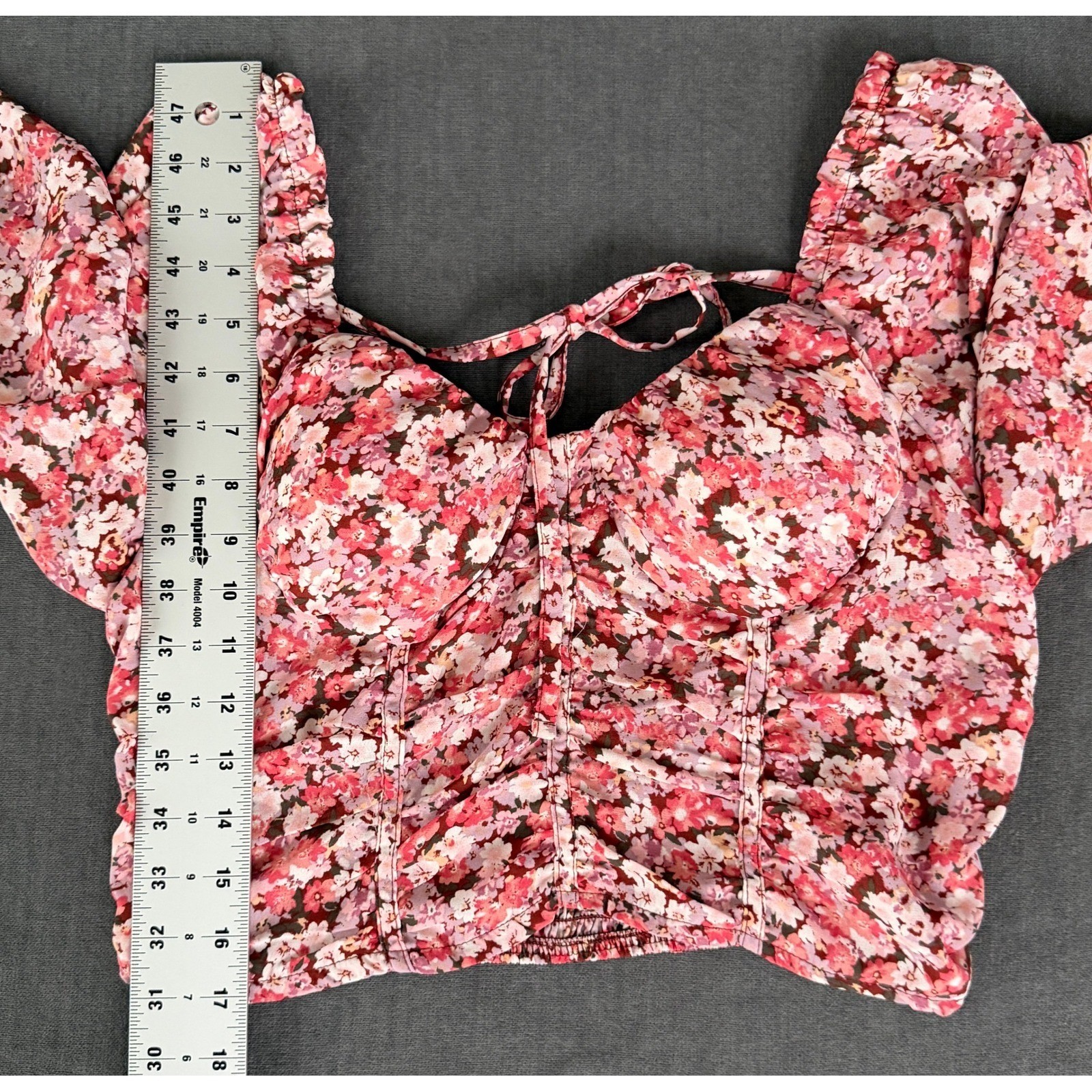 как выглядит Madden NYC Cropped Floral Corset Top Womens L Pink Romantic Cottagecore Coquette фото