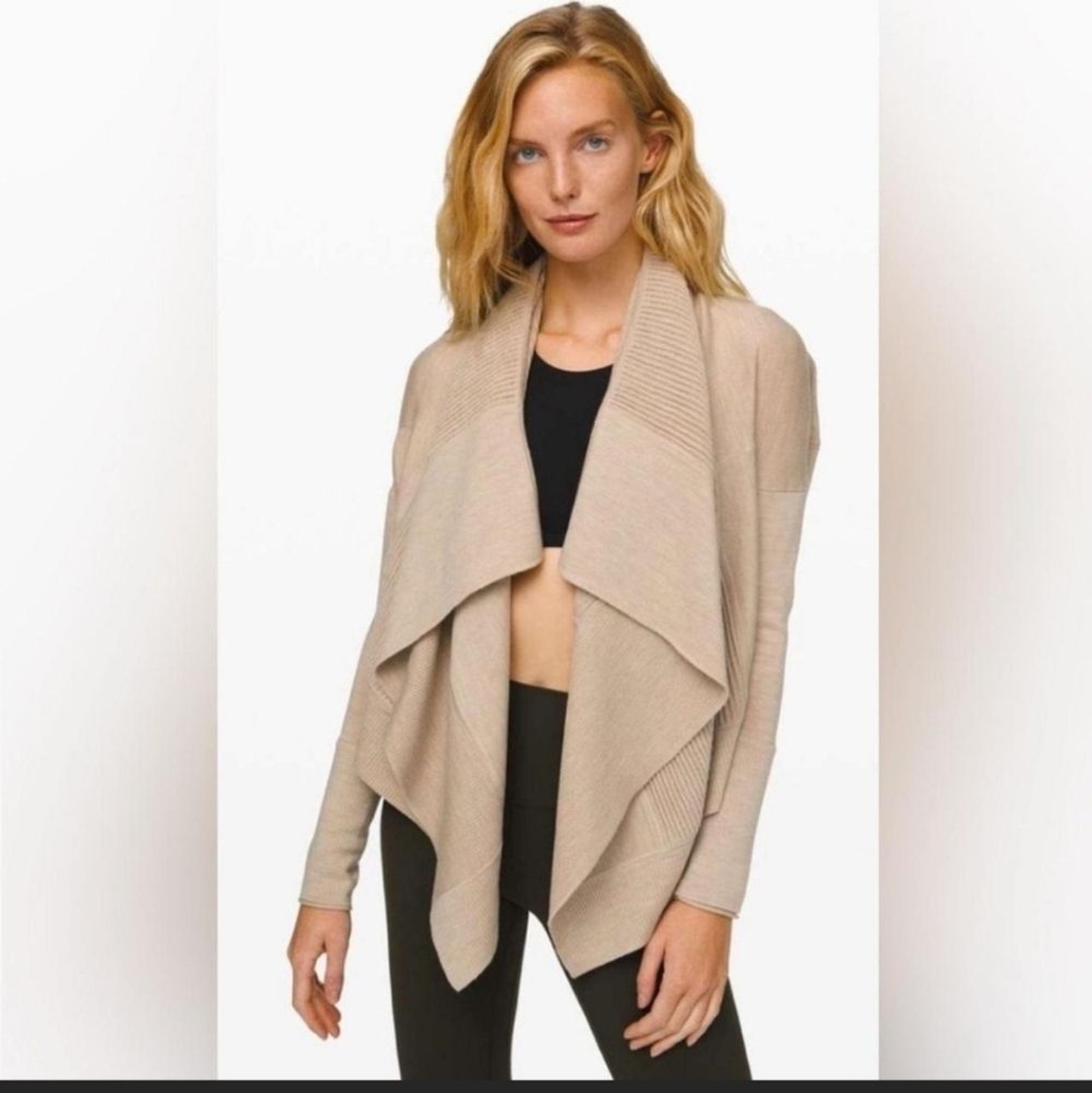 как выглядит Lululemon Sit In Lotus Wrap Cream Merino Wool Cardigan Loungewear Athleisure фото