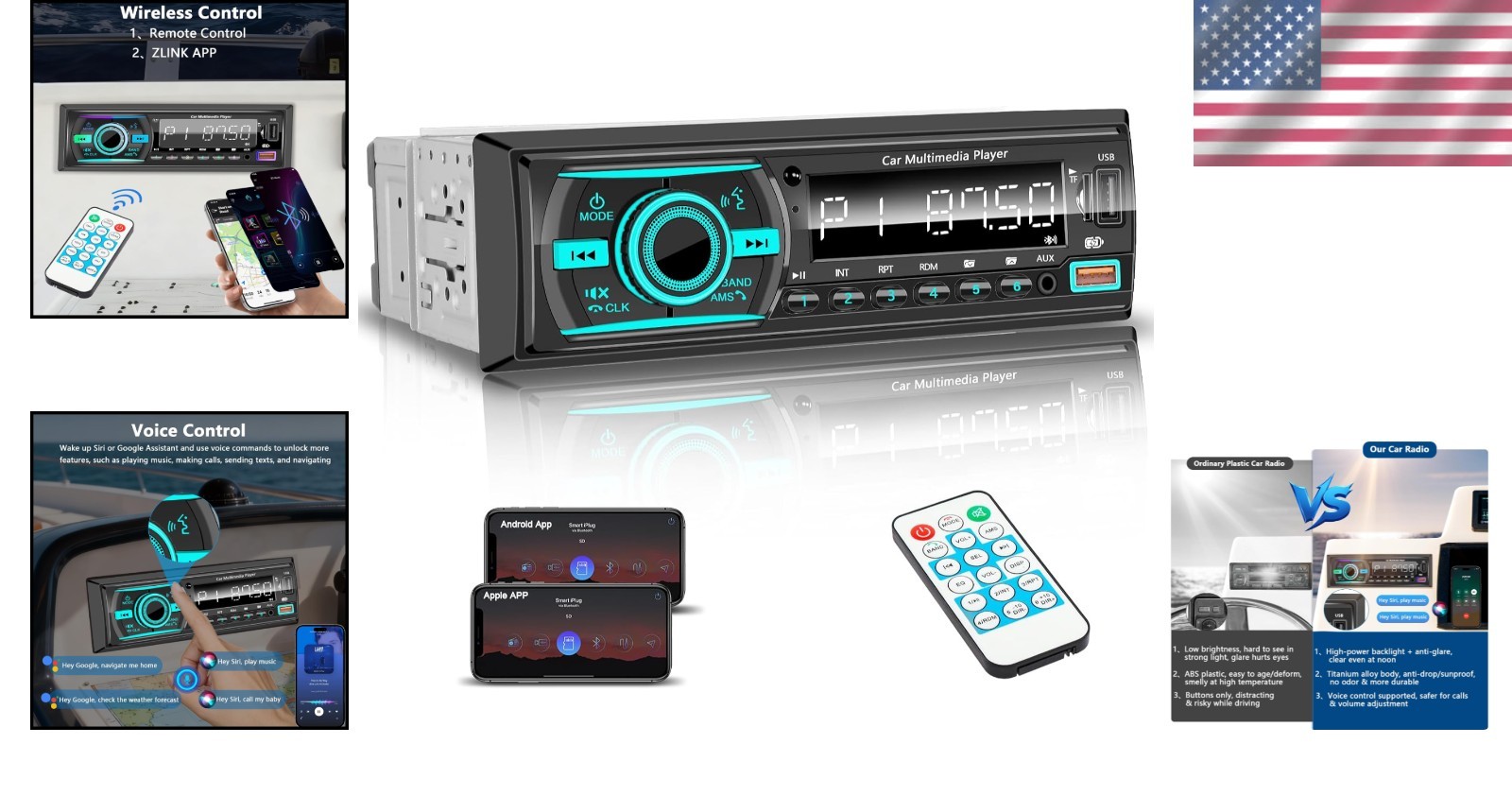 Single DIN Marine Head Unit with Built-in Mic Digital LCD - Perfect for Boats