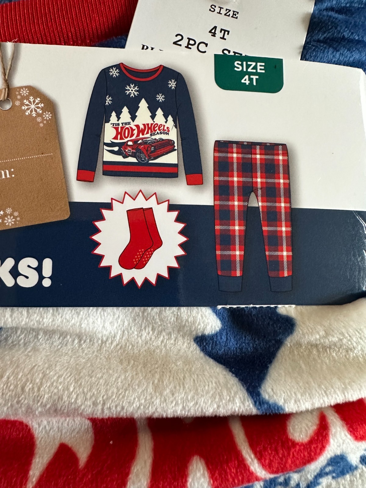 HOT WHEELS Christmas Pajama Sleep 2-Piece Set Cozy Socks Boys Size 4T Toddlers