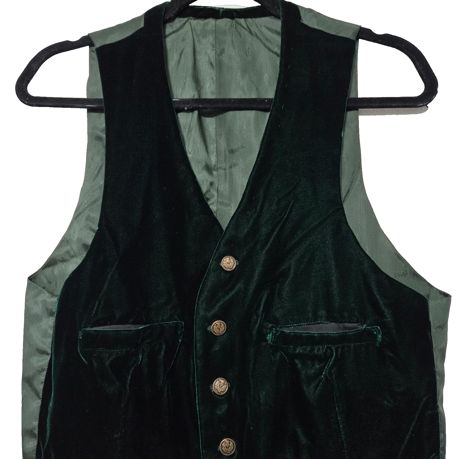Vintage Emerald Green Velvet Vest Chest 34 Handmade Waistcoat Steampunk Unisex