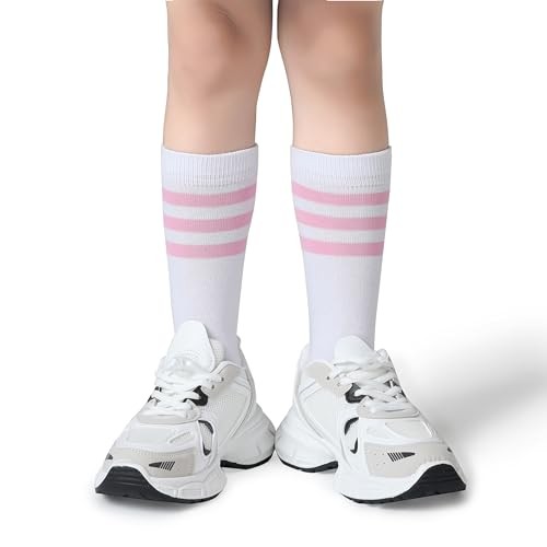 Boys Girls Over the Calf Striped Tube Socks Cotton Soft Large C06-pink/White