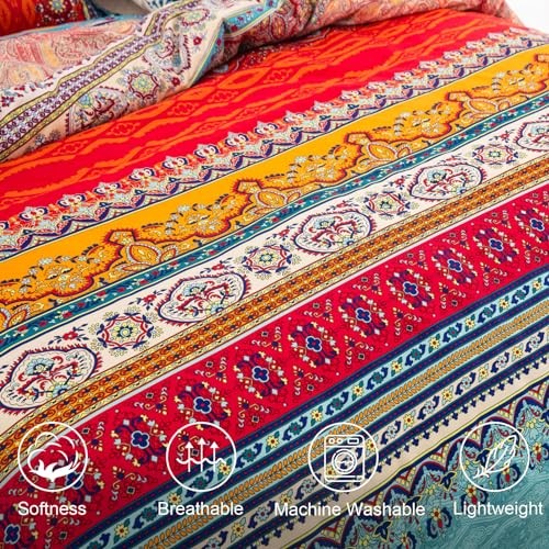 Striped Bohemian Comforter Set Size 3 Pieces Boho Hippie Geometric King Red