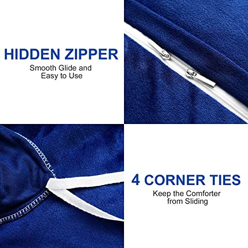 Fluffy Plush Duvet Cover Set Size, Luxury Ultra Soft Velvet Queen Navy Blue