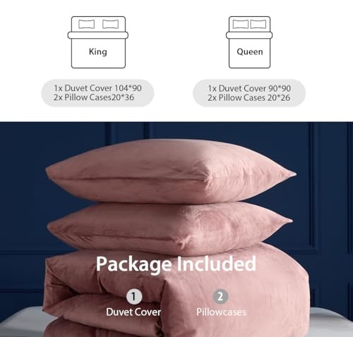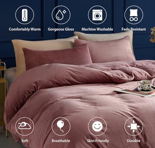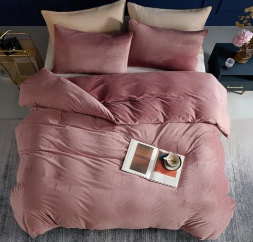 3PCS Velvet Duvet Cover Comforter Duvet Cover Set Size, Queen Blush Pink