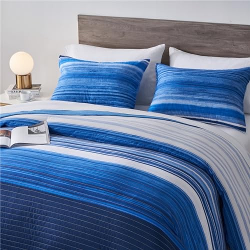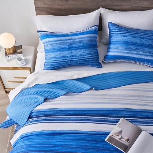 Full/Queen Quilt Bedding Set, White and Patchwork Full/Queen 3-Piece Set Blue