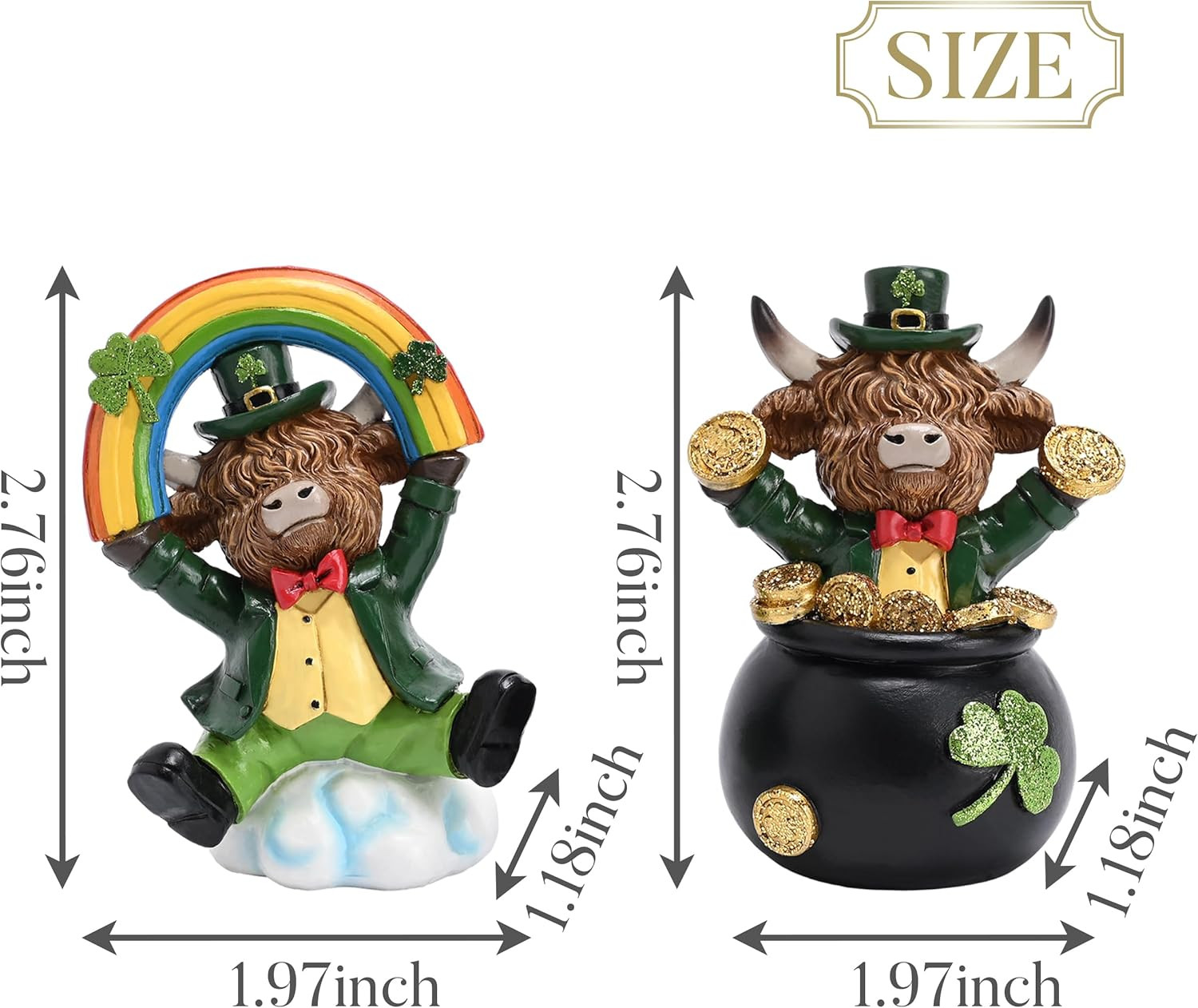St Patricks Day Decorations for Home, 2Pcs Highland Cow Decor with Shamrock Pot