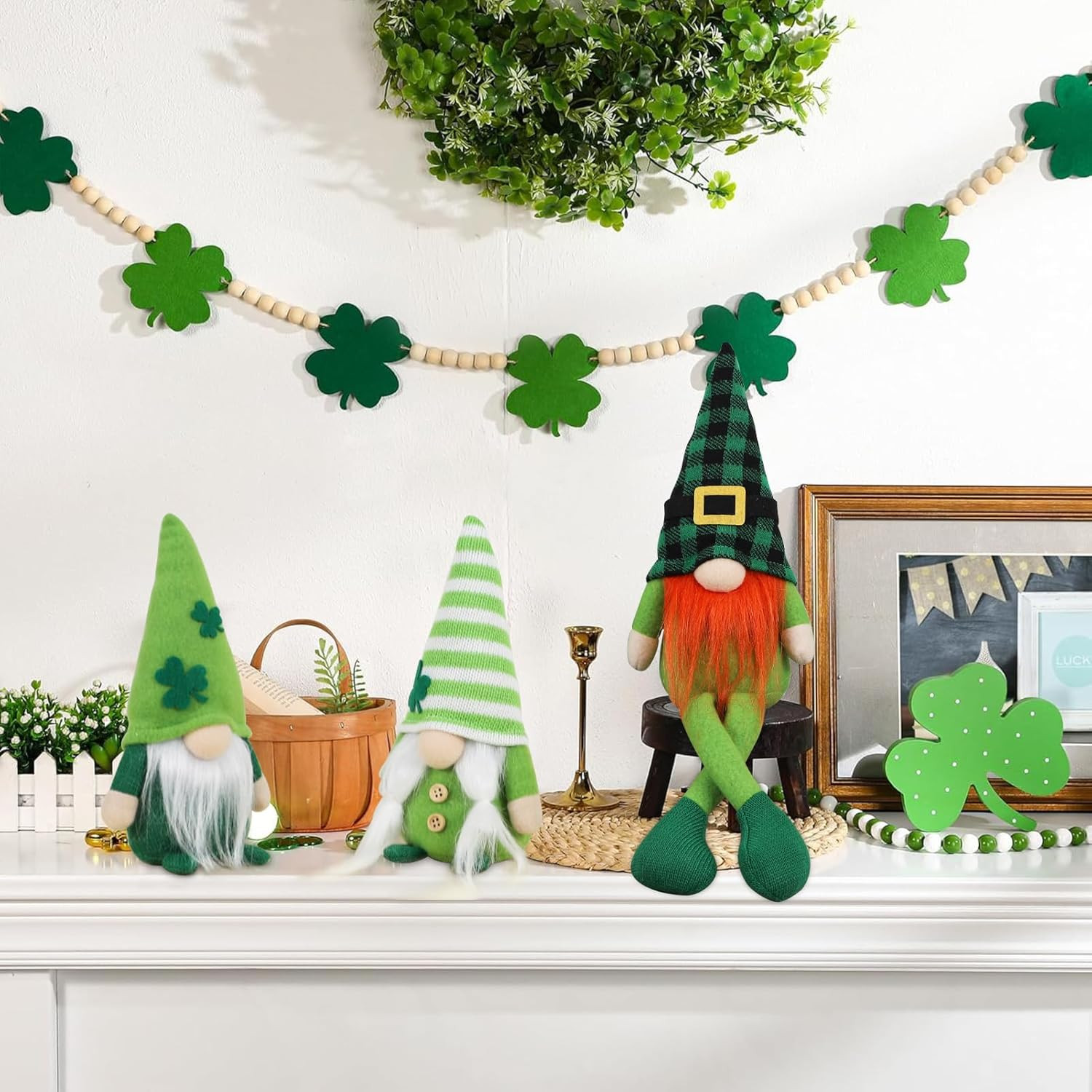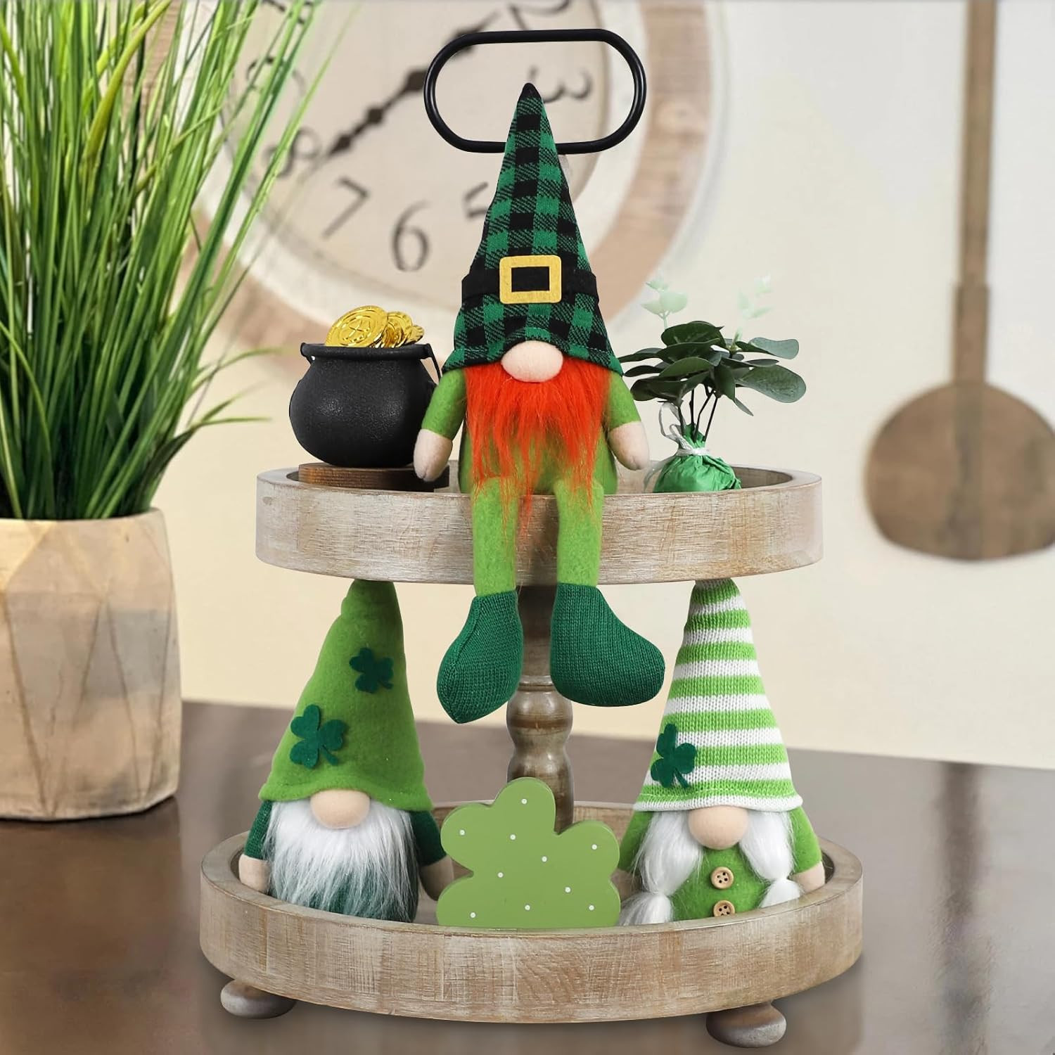 St. Patrick'S Day Decorations, 3PCS Shamrock Gnomes Plush for Tiered Tray Mantel