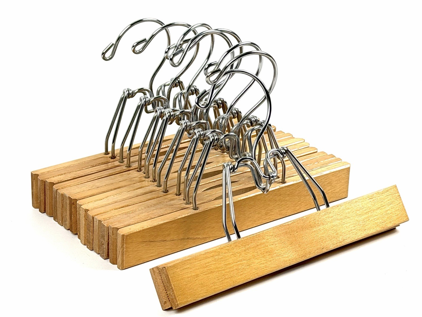 как выглядит Vintage Lot Of 8 9 SETWELL LIKE Wood Wooden Clamp Clothes Hangers Pants Skirts фото