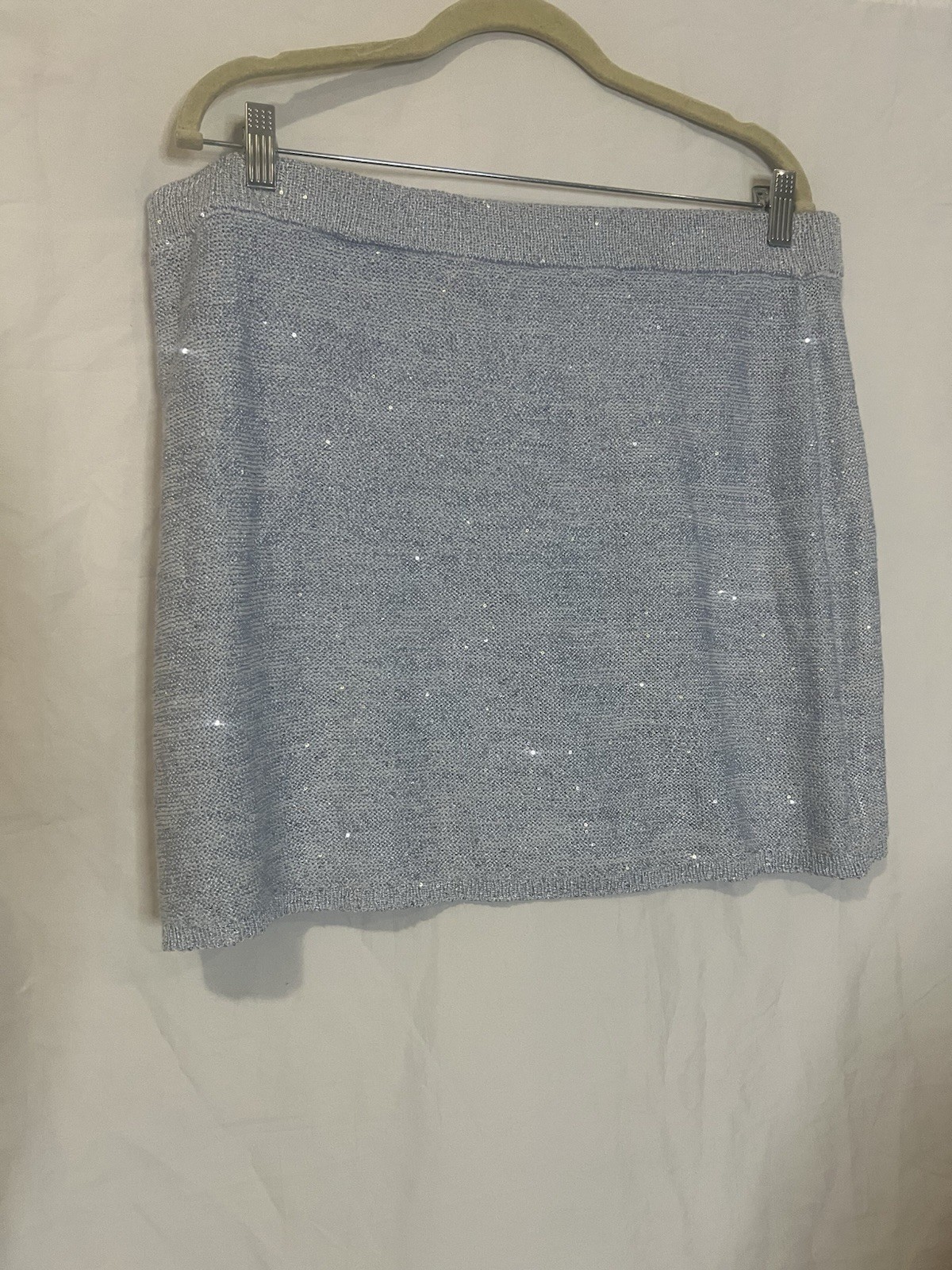 как выглядит Wild Fable Women s Sequin Knit Mini Skirt XL Light Blue Sparkle NWT фото