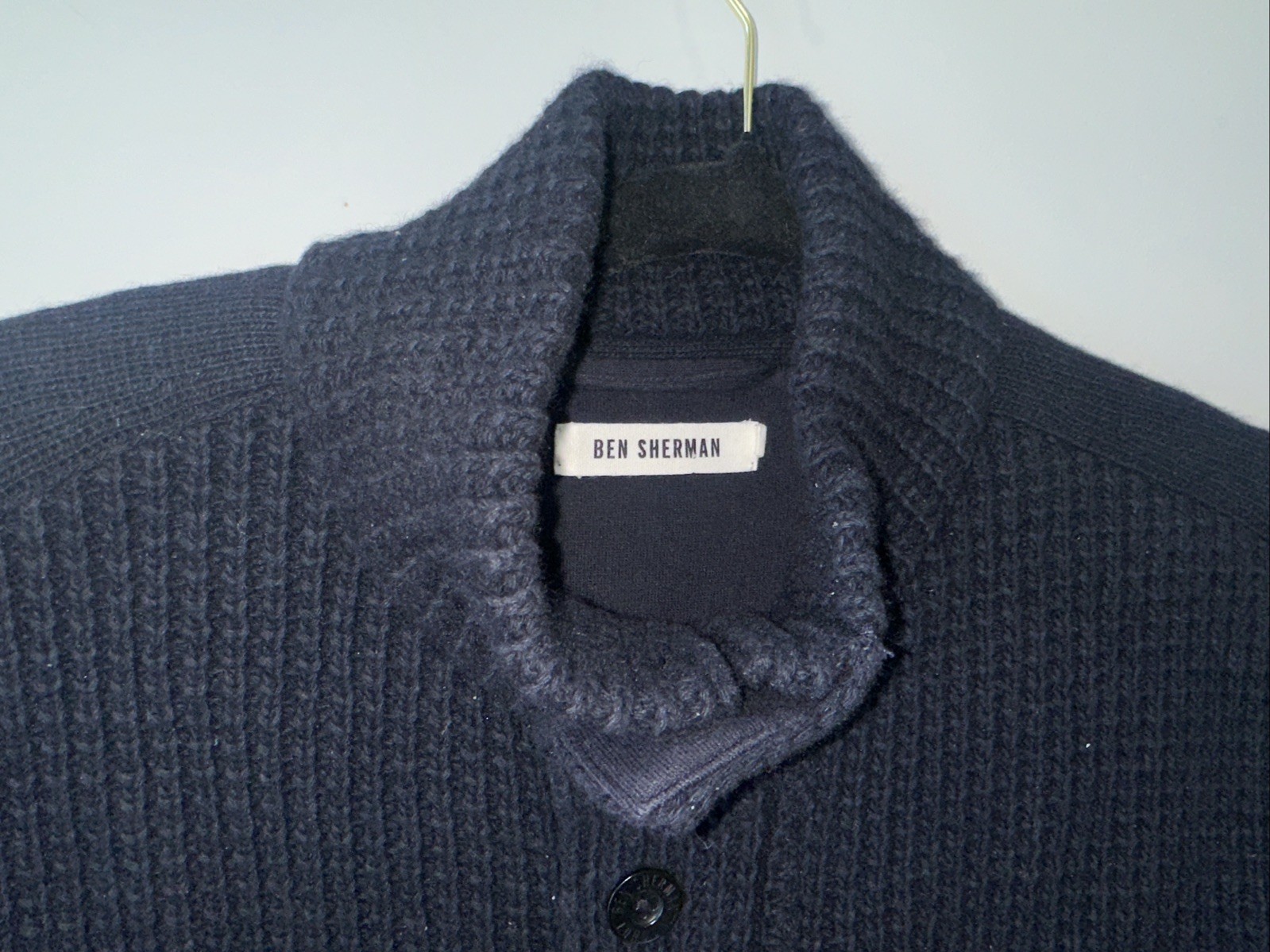 как выглядит Ben Sherman Blue Knit 4 Pocket Zip Button Front Casual Jacket Sweater Sz M фото