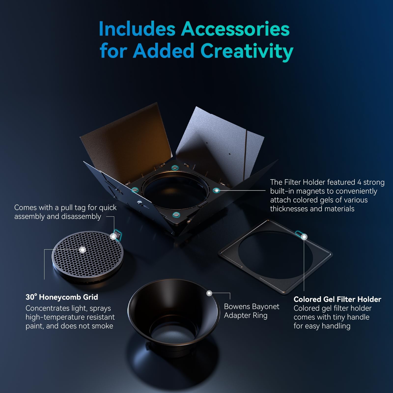 SmallRig 8-Leaf Lighting Barn Doors with Bowens Mount Adapter, Damping Shaft ...