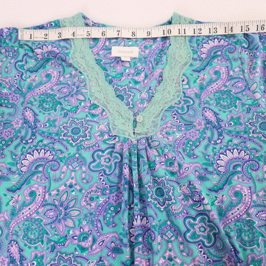 как выглядит Sussan Womens Nightie Size M Aqua Purple Paisley Long Sleeve Nightshirt Jersey фото