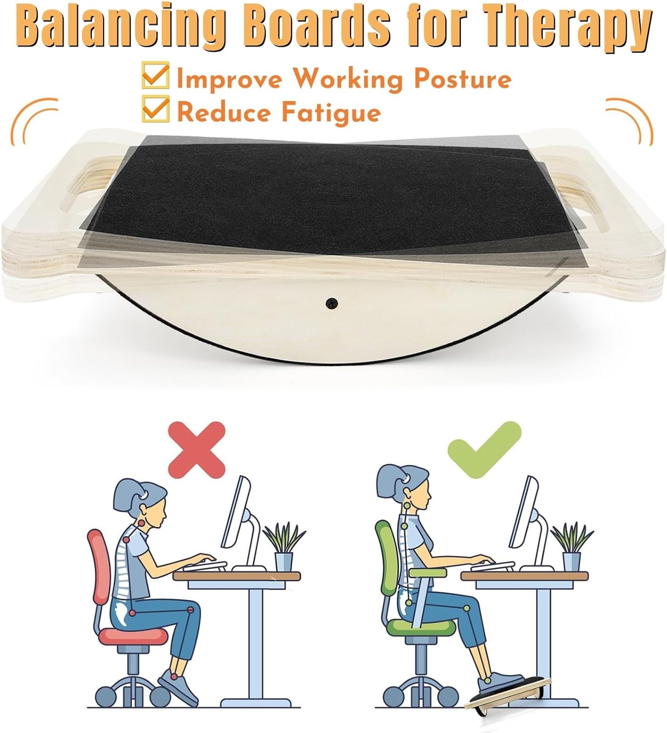 Wooden Balance Board, 350LBS Wobble Board with Handle for Adults, Wood