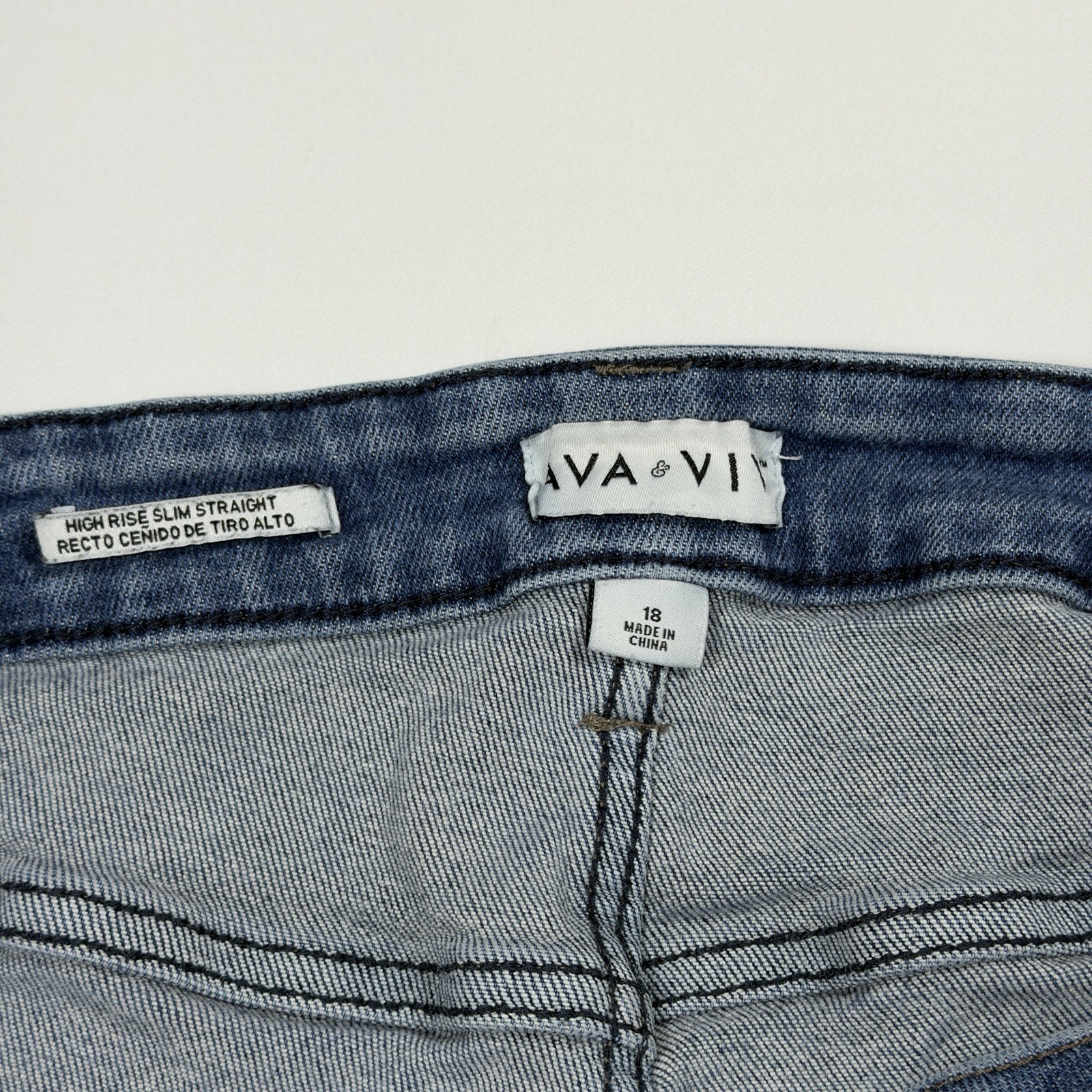 Ava Viv Women s Plus Size 18 Slim Straight Jeans High-Rise Blue Denim Pants
