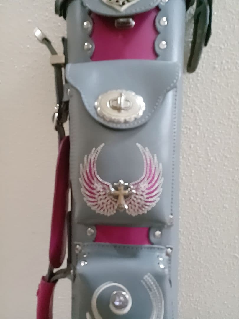 Billiard Cue Case Gray Pink Decorated Genuine Leather Instroke Used