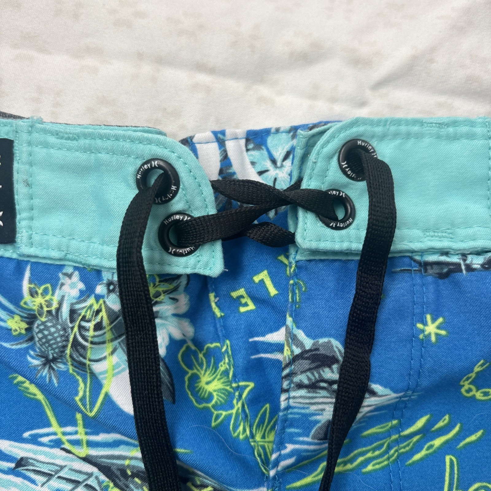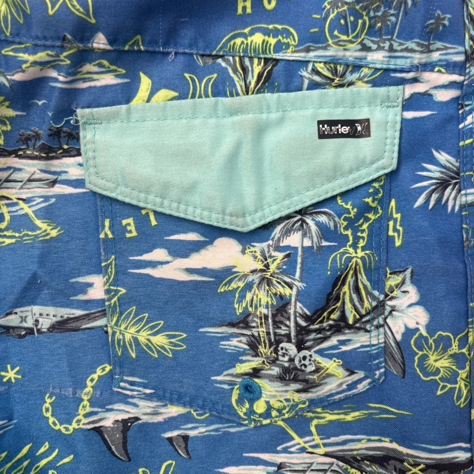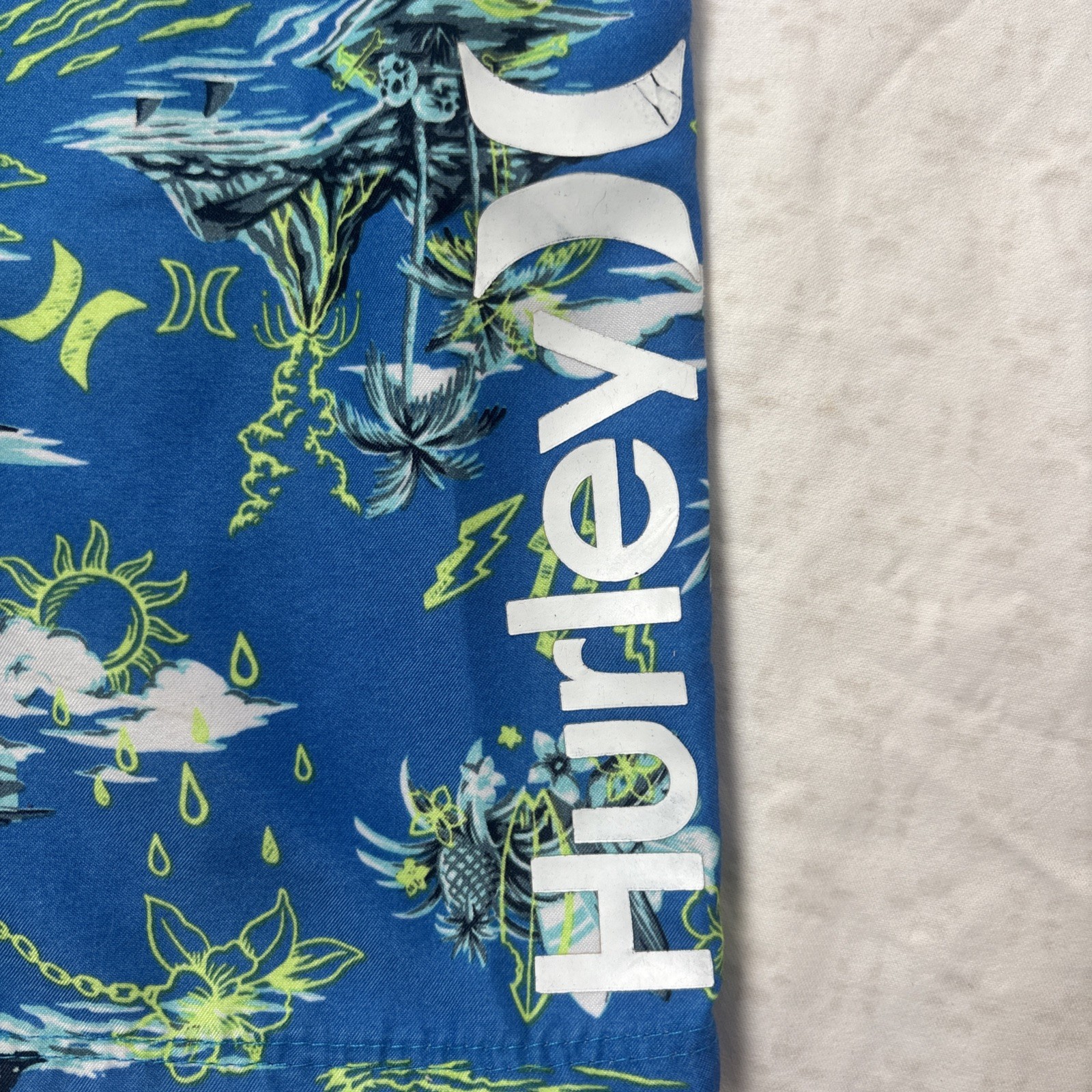 как выглядит Hurley Boys 10/25 Swim Shorts Neptune Blue Tropical Shark Island фото