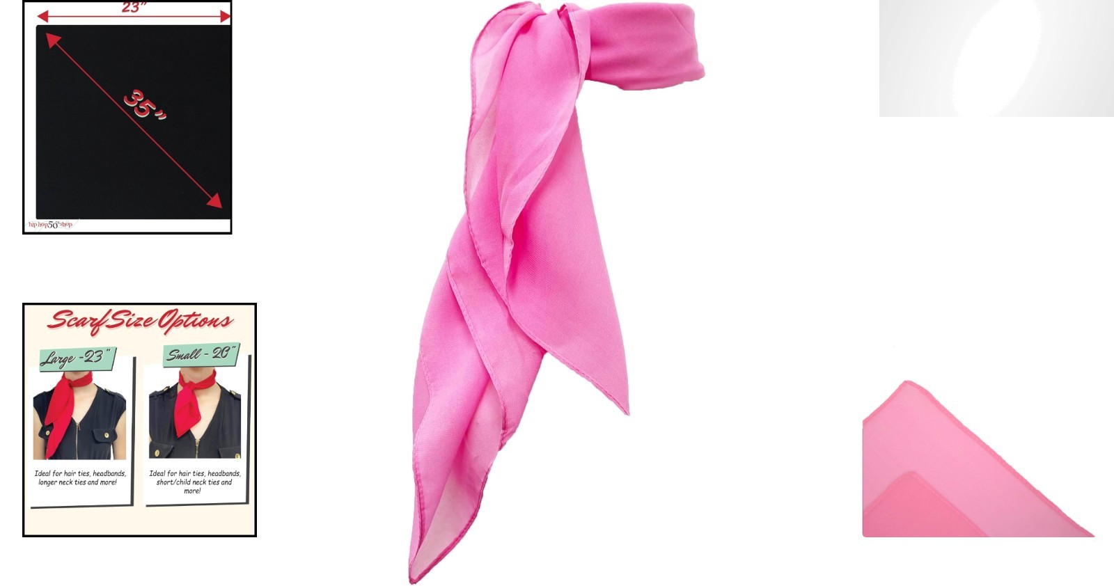 как выглядит Charming 1950s Hot Pink Chiffon Scarf - Versatile Retro Hair Tie 20"x20" фото