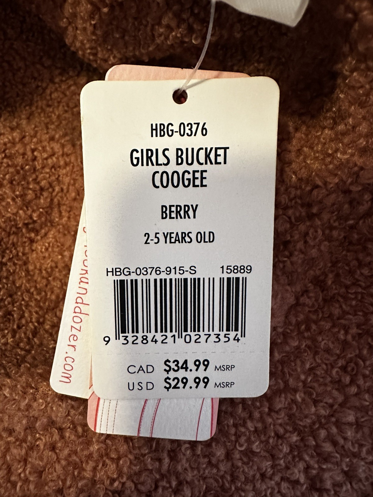 NWT Girl's Berry Corduroy Reversible Bucket Hat - Millymook, 2-5 Years
