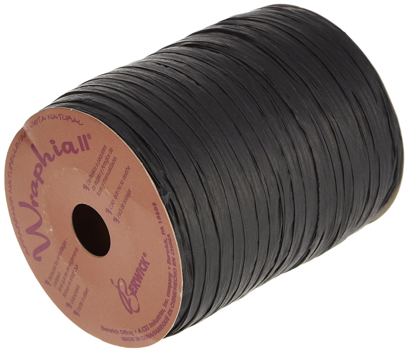 как выглядит Matte Black Raffia Ribbon 1/4in Wide 100 Yards 7mm for Crafts Gift Wrapping фото