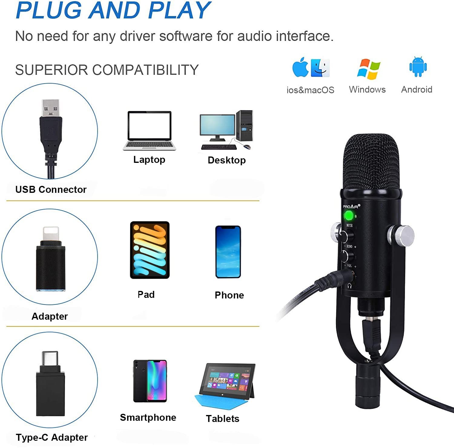 как выглядит USB Microphone Condenser Computer PC Gaming Mic Podcast Microphone Kit for St... фото