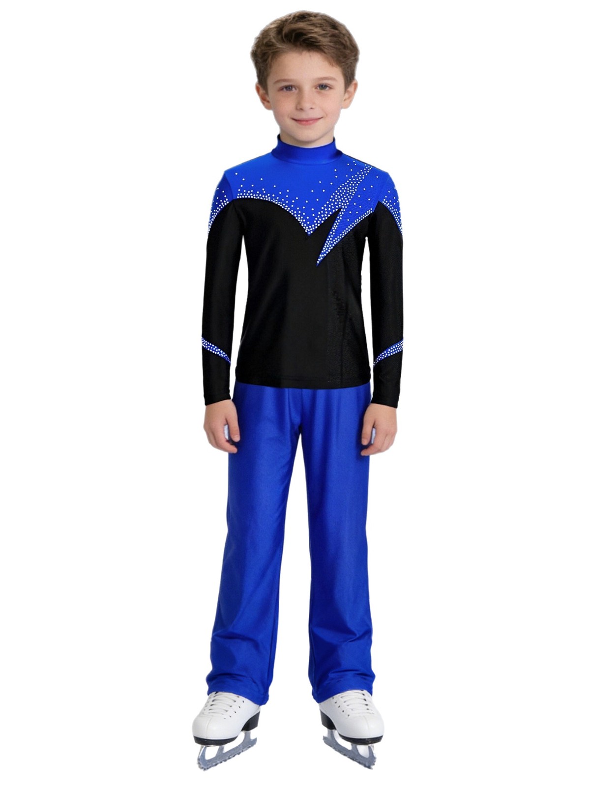 как выглядит Kids Boys Outfit Rhinestones Costume Training Sets Shiny Long Sleeve Sparkly фото