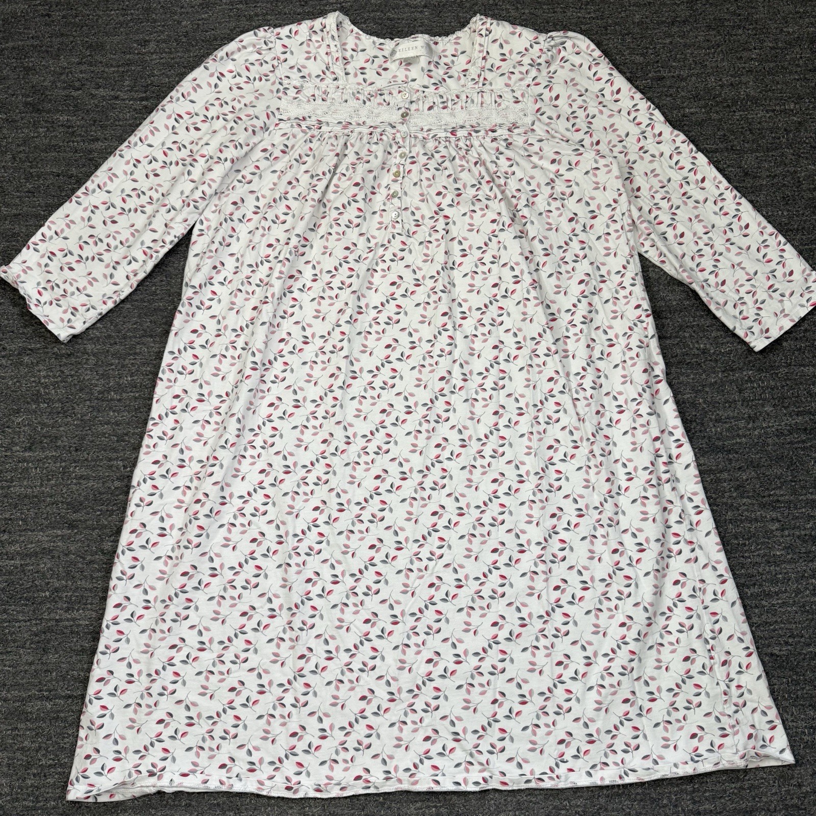 как выглядит Eileen West Ballet Nightgown Women Large Floral 100 Cotton Lace Trim Midi фото
