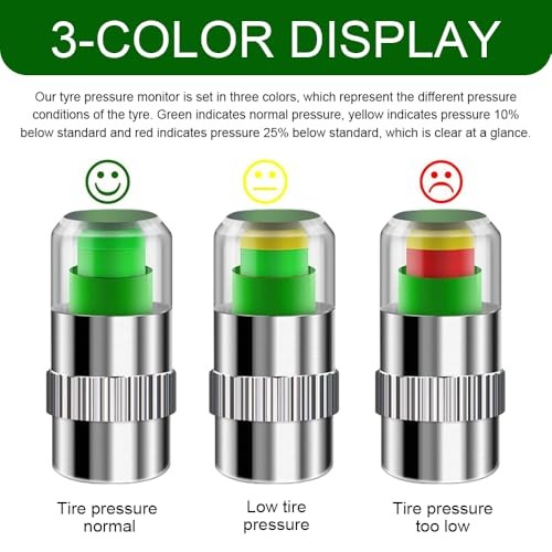 Car Tire Pressure Monitor Valve Stem Caps, 2.4Bar 36PSI Car Tire 4PCS Silver