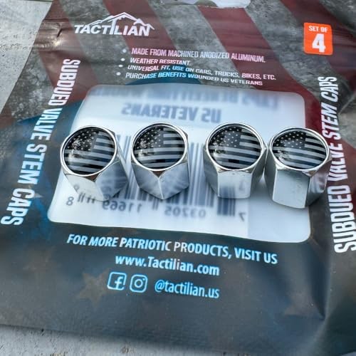 American Flag Chrome Valve Tire Valve Caps 4 Pack Silver USA Flag Valve Caps
